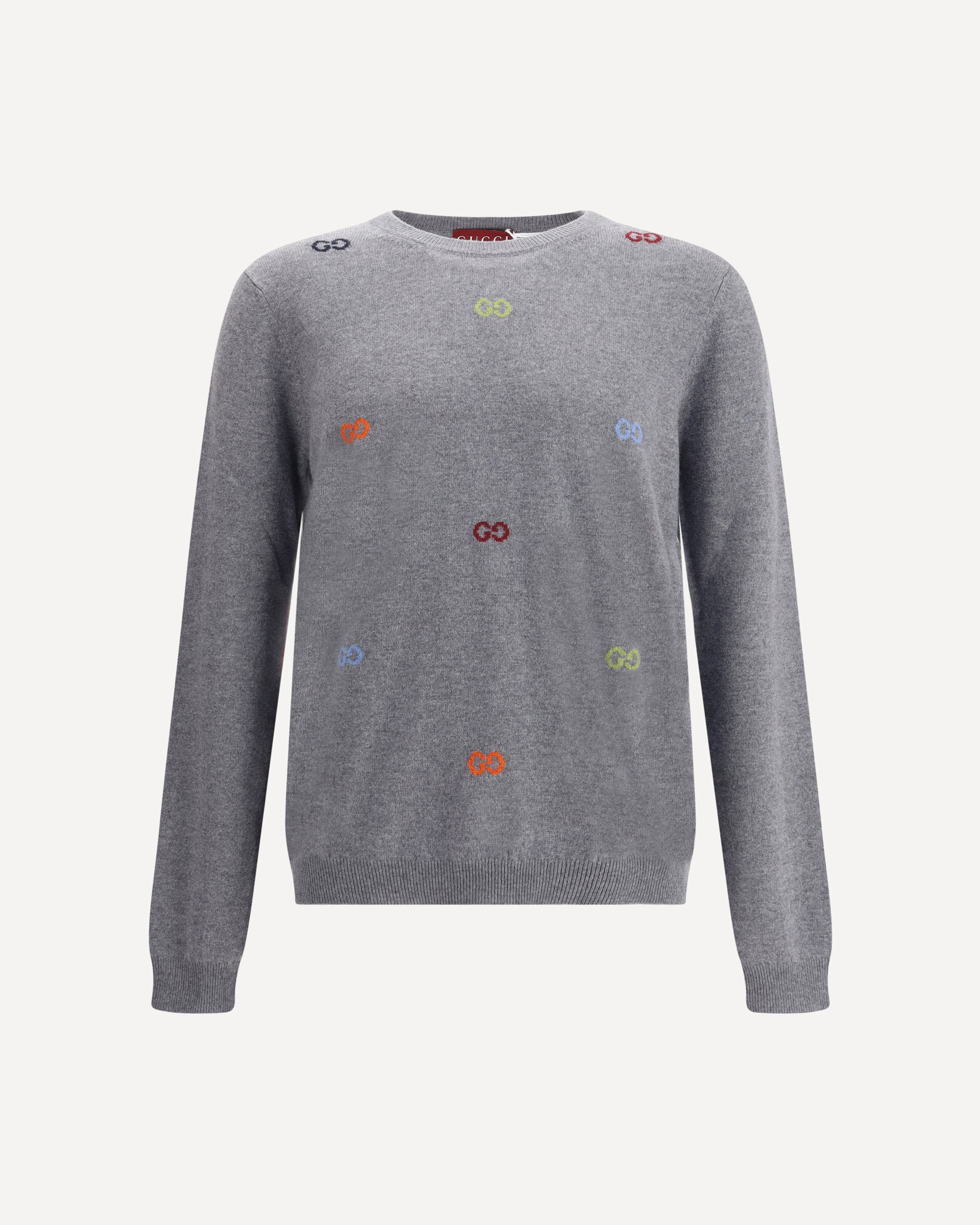 Gucci's cashmere Sweater combines bold style and craftsmanship. Made from soft wool, it features a ribbed crew neck, cuffs and hem, and is decorated with the iconic all-over multicolor jacquard logo for a distinctive and recognizable look. DETAILS - Sku: 833668XKEYH_1015 - Season: AW25 - Fit: Regular - Composition: GENERAL 100% Kashmir/capra Hircus - MADE IN ITALY