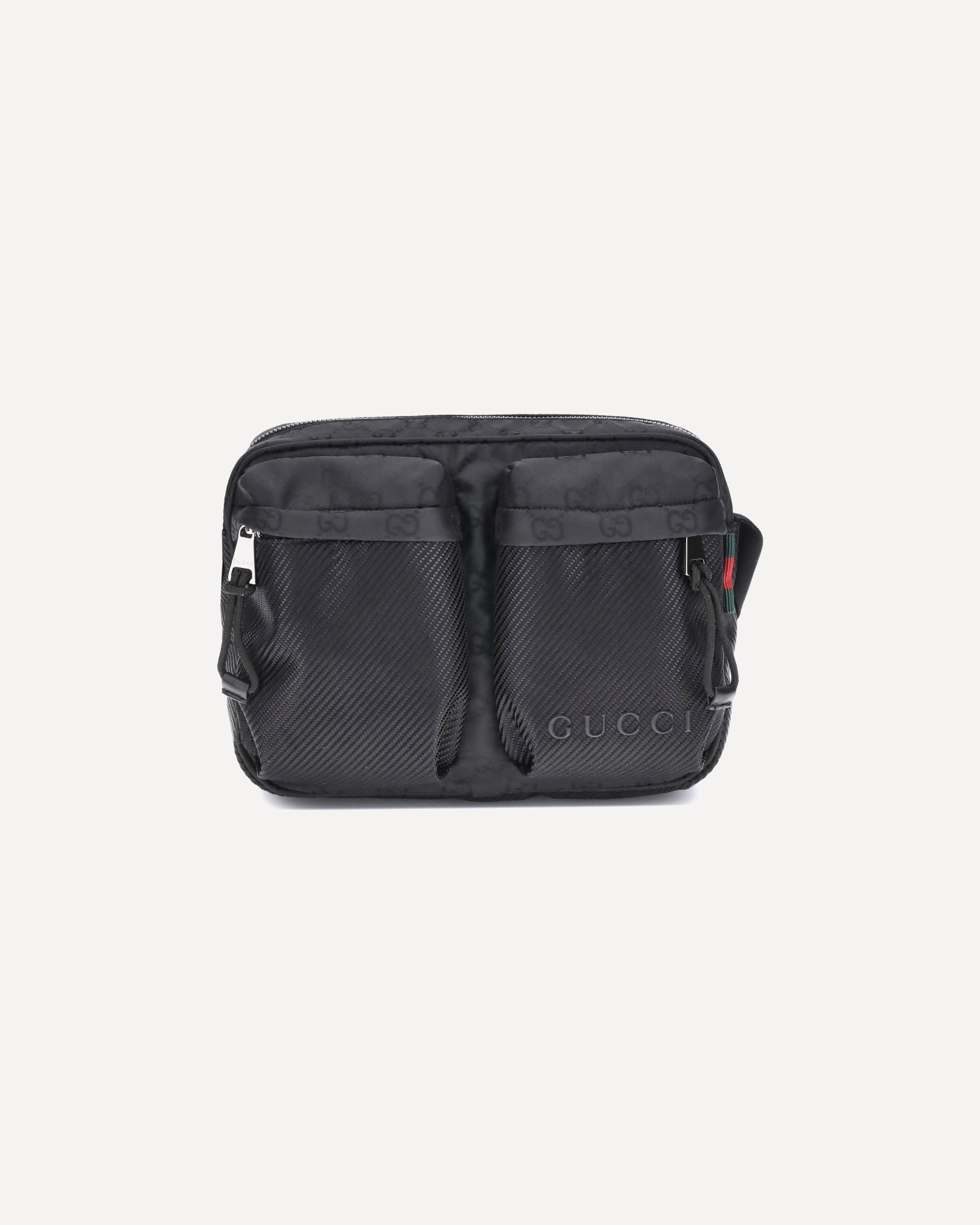 The Gucci Nexus Small Shoulder Bag is a practical and modern accessory. Made of durable black GG Nylon, it features the iconic green and red Web motif label and tone-on-tone Gucci logo, enhancing its discreet yet recognizable design.The interior features a padded compartment, ideal for protecting your belongings. On the outside, two zippered pockets provide additional space for essentials. Closure is via a secure zipper. DETAILS - Sku: 834475FAD76_1047 - Season: AW25 - Dimension: 24.6x24.6x6.5 - Composition: GENERAL 40% Polyester 60% Polyamide - MADE IN ITALY