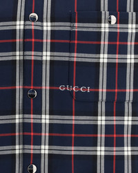 The padded tartan cotton jacquard Shirt by Gucci reinterprets classic preppy style with a modern, versatile attitude. Crafted in the house’s signature multicolour tartan jacquard, it transitions effortlessly from everyday wear to more relaxed occasions. The quilted lining adds warmth and structure, giving the piece a refined shirt-jacket feel. Finished with long sleeves and a front button fastening, it’s a distinctive yet wearable design that blends comfort with iconic style. DETAILS - Sku: 853013ZAUAC_4069 - Season: SS26 - Fit: Regular - Composition: OUTER 100% Cotton INNER 100% Polyamide - MADE IN ITALY
