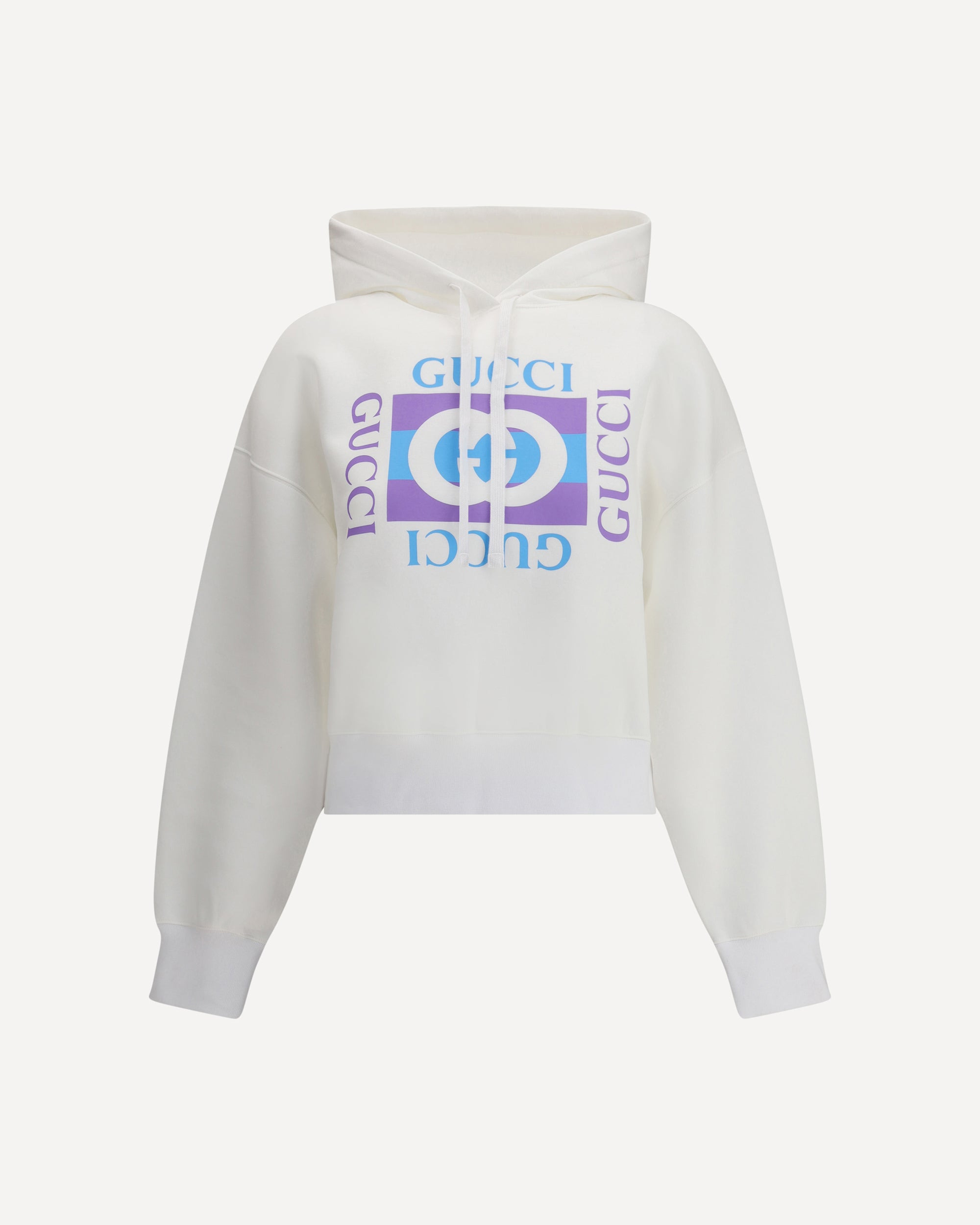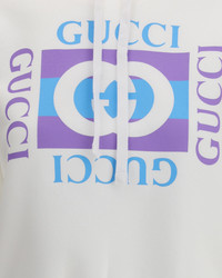 Gucci's Hoodie is made of lightweight doubled cotton jersey, perfect for everyday comfort without sacrificing style. It features a vintage logo print that gives a retro feel to the design. The fixed hood is adjustable with a drawstring, while the low shoulders and ribbed trim complete the look with a soft, modern fit. DETAILS - Sku: 837935XJHGJ_9081 - Season: AW25 - Fit: Regular - Composition: GENERAL 100% Cotton - MADE IN ITALY