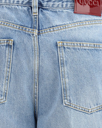 Gucci's wide leg Jeans feature a faded effect and light wash that give a vintage yet modern allure. With a high waist and belt loops, they offer a comfortable and defined fit. The button and zipper closure ensures practicality, while the two front pockets, with coin pocket, and two square back pockets ensure functionality. Contrast stitching completes the design with refined detail. DETAILS - Sku: 816971XDC7S_4009 - Season: AW25 - Fit: Regular - Composition: GENERAL 100% Cotton - MADE IN ITALY