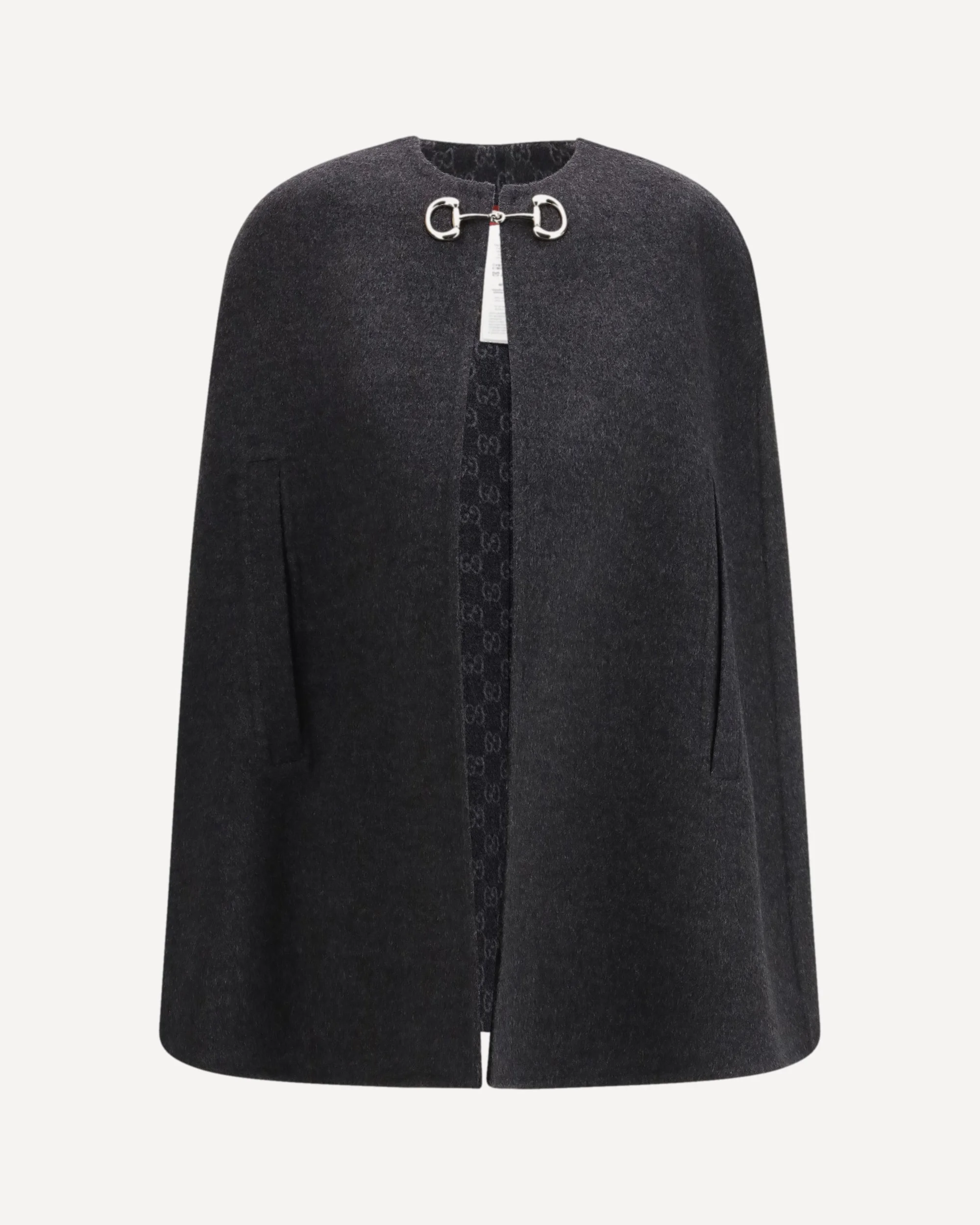 The wool-blend Cape by Gucci is crafted from a refined blend of wool and silk, offering a soft texture and understated elegance. The clean round neckline is paired with a front closure featuring an interlocking Horsebit stud, an iconic symbol of the House. Unlined for a light and fluid feel, this cape enhances the purity of the silhouette, making it a sophisticated and versatile piece to elevate refined looks with a distinctive touch. DETAILS - Sku: 852796ZAQW0_1179 - Season: SS26 - Fit: Oversize - Composition: GENERAL 99% Wool 1% Silk - MADE IN ITALY