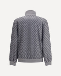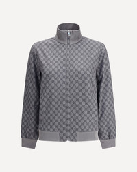 Gucci Sweatshirt with front zipper closure and ribbed high neck. The design is completed with ribbed cuffs and hem, as well as two practical side welt pockets. The iconic GG motif is repeated all-over, giving the garment a distinctive and recognizable character. A perfect mix of sporty style and sophistication typical of the house. DETAILS - Sku: 837678XJHF0_1000 - Season: AW25 - Fit: Regular - Composition: GENERAL 55% Polyester 45% Cotton - MADE IN ITALY