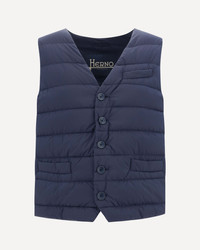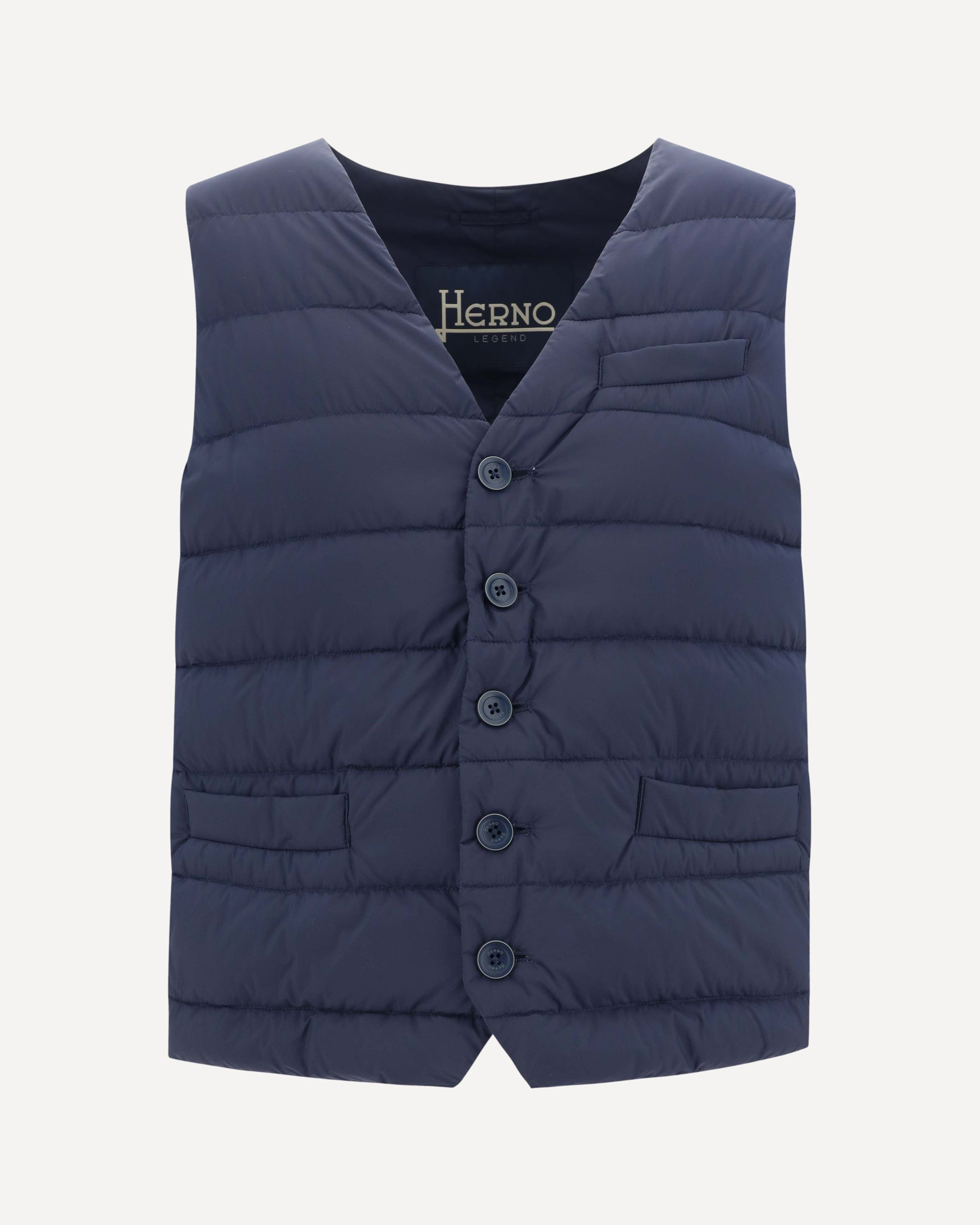 Vest by Herno, v-neck on front, button closure on front panel, two front welt pockets, quilted design, monochrome pattern, adjustable waistband with buttons on back panel, regular fit. DETAILS sku PI002ULE12456Z_9202 composition: POLYAMIDE 100% color group: BLUE gender: MAN season: AW24 size chart: RTW IT category name: DOWN JACKETS