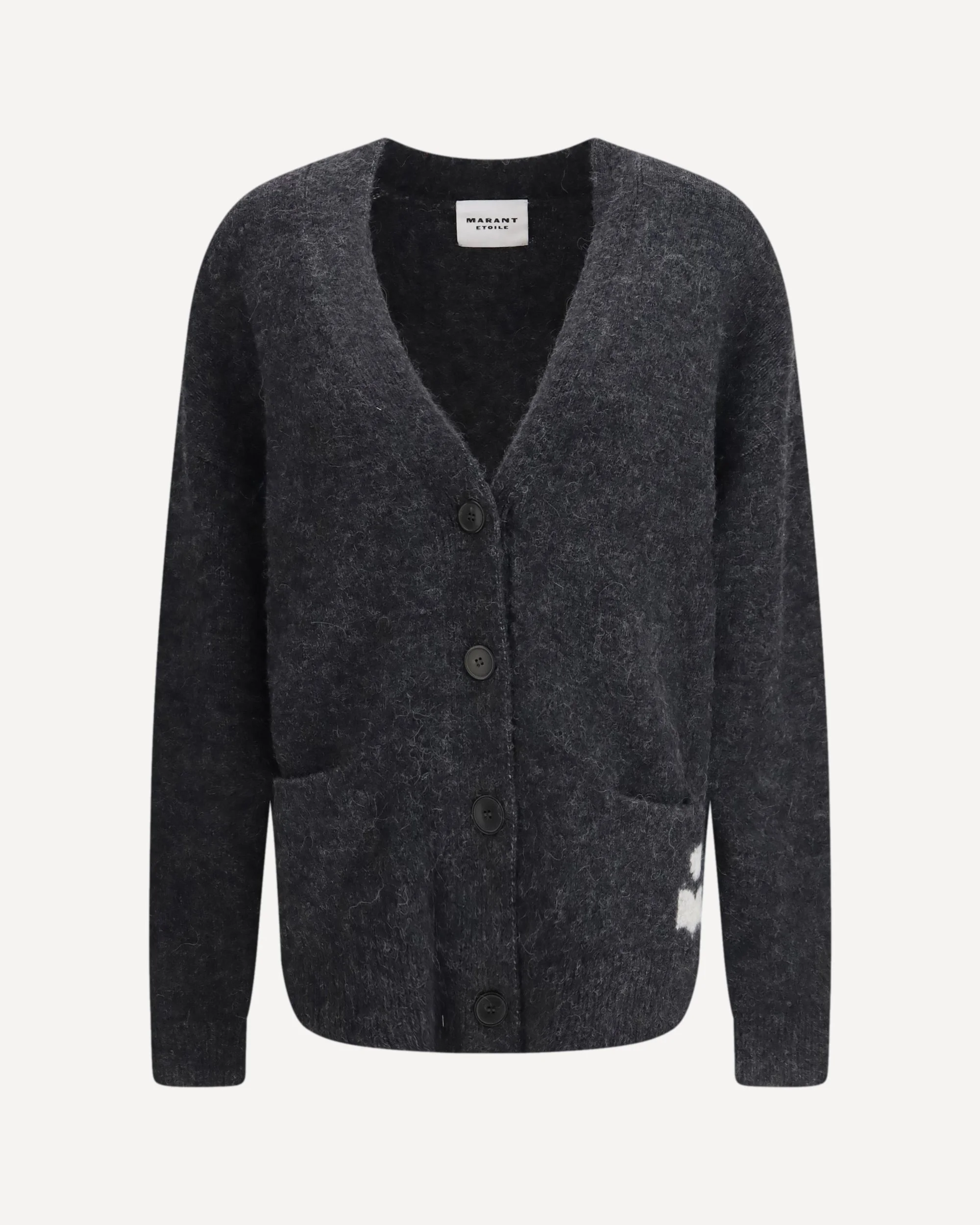 The Eborah Cardigan in alpaca blend by Marant Etoile combines comfort and character in a contemporary design. Crafted from a soft, enveloping yarn, it features a V-neckline and a front button closure. The contrasting embroidered logo at the hem adds a distinctive touch, while the two front slit pockets enhance its practicality. Ribbed cuffs and hem complete the look, finished with an oversized fit that makes it ideal for relaxed layering. DETAILS - Sku: CA0129FAD1L12E_02MY - Season: SS26 - Fit: Oversize - Composition: GENERAL 63% Alpaca Vicugna Pacos 32% Nylon 5% Elastane - MADE IN CHINA