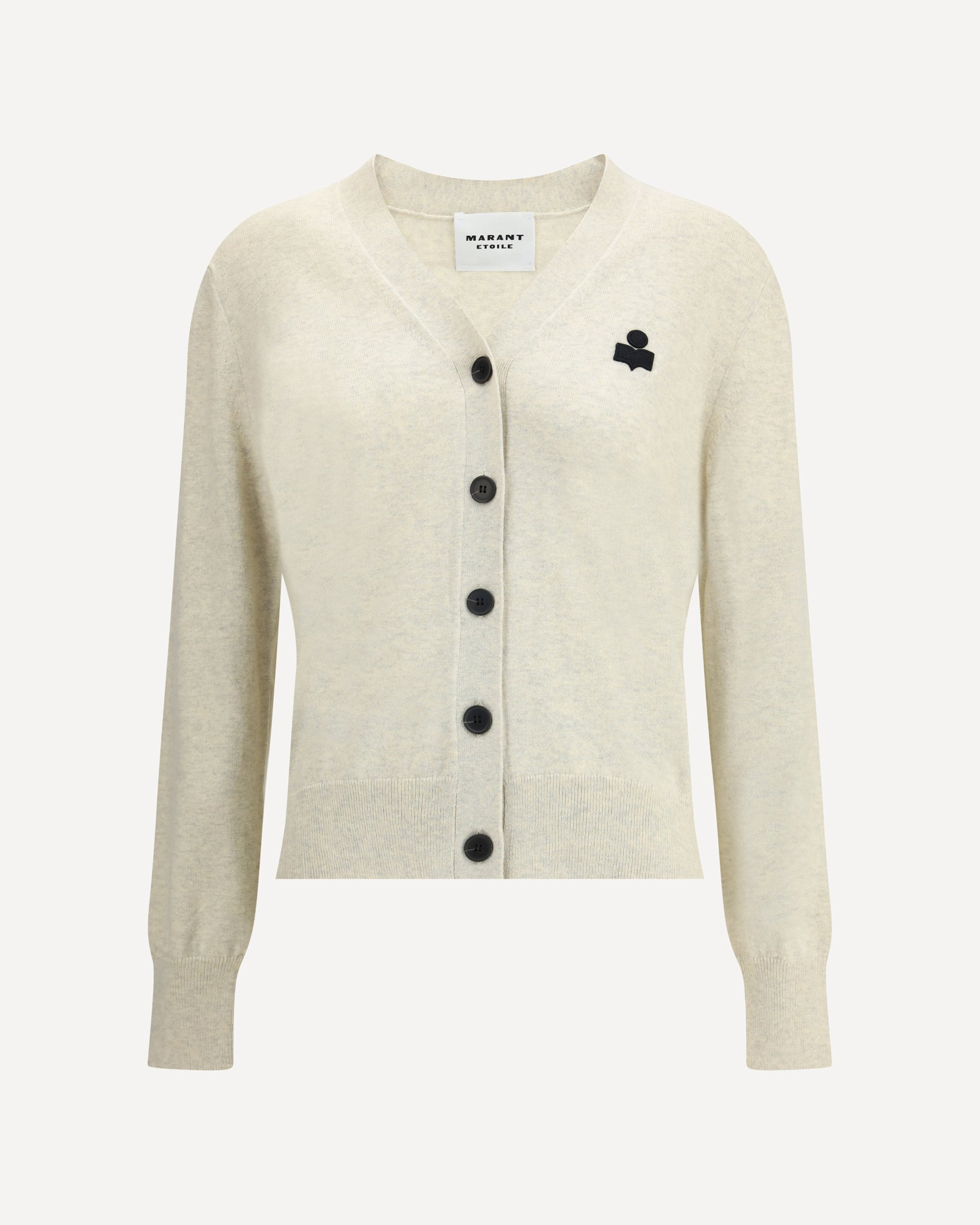 Marant Etoile's Karina Cardigan is made of cotton and features an essential design with long sleeves and a V-neckline. The front button closure and "Marant" logo complete the garment, perfect for a casual and refined style. DETAILS - Sku: CA0104FAC1L17E_02LY - Season: AW25 - Fit: Regular - Composition: GENERAL 70% Cotton 30% Wool - MADE IN CHINA