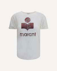 The Koldi Linen T-Shirt by Marant Etoile is a fresh and sophisticated piece, ideal for a casual-chic look. The ribbed crew neck adds a classic detail, while the rolled sleeve hem adds a touch of originality. The iconic monogram of the brand printed in contrast on the front represents a distinctive sign of elegance. With a regular fit, this t-shirt is comfortable and versatile, perfect for creating summer outfits or for adding a touch of luxury to your everyday look. DETAILS - Sku: TS0004FAA1N10E_WHPM - Season: AW25 - Fit: Regular - Composition: GENERAL 100% Linen - MADE IN TUNISIA