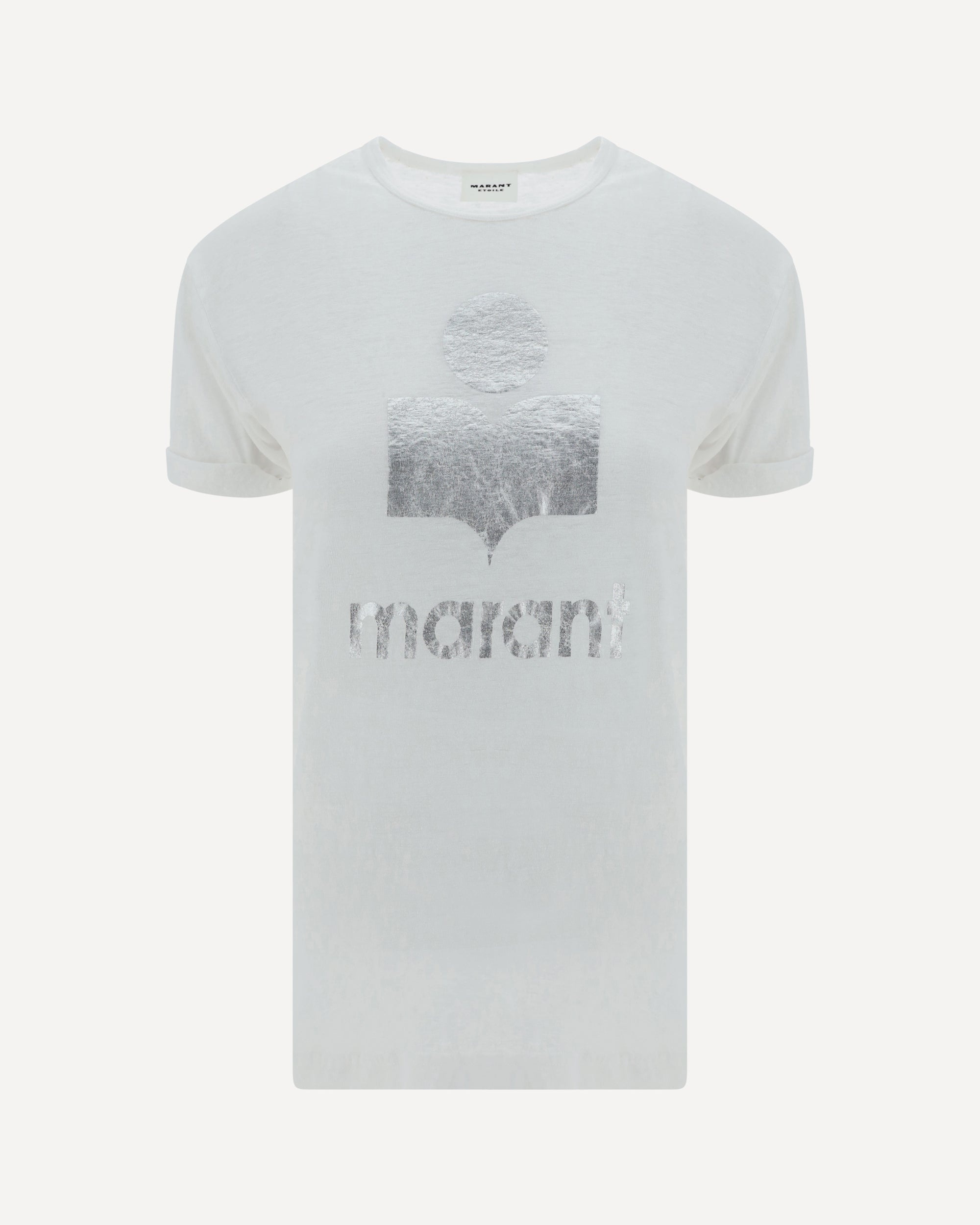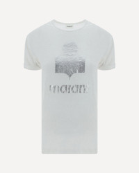 The Koldi Linen T-Shirt by Marant Etoile is a fresh and sophisticated piece, ideal for a casual-chic look. The ribbed crew neck adds a classic detail, while the rolled sleeve hem adds a touch of originality. The iconic monogram of the brand printed in contrast on the front represents a distinctive sign of elegance. With a regular fit, this t-shirt is comfortable and versatile, perfect for creating summer outfits or for adding a touch of luxury to your everyday look. DETAILS - Sku: TS0004FAA1N10E_20WH - Season: AW25 - Fit: Regular - Composition: GENERAL 100% Linen - MADE IN TUNISIA