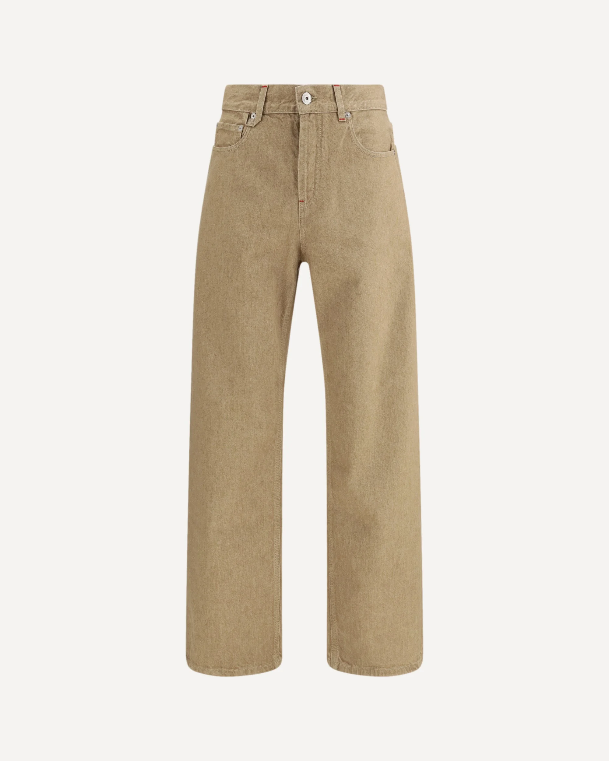 The de-Nimes straight-leg denim Trousers by Jacquemus reinterpret classic jeans through a clean, refined aesthetic that reflects the brand’s minimalist vision. Crafted from beige cotton denim, they feature a mid-rise waist and a straight-leg silhouette for a timeless, well-balanced fit. Tailored details such as engraved metal buttons, metal rivets, contrast stitching, and the signature “J” belt loop add subtle character while preserving understated elegance. The back yoke and waistband label complete the design, making these jeans a versatile and modern essential for everyday wear. DETAILS - Sku: PAM00028AD00058_150 - Season: SS26 - Fit: Oversize - Composition: GENERAL 100% Cotton - MADE IN ITALY