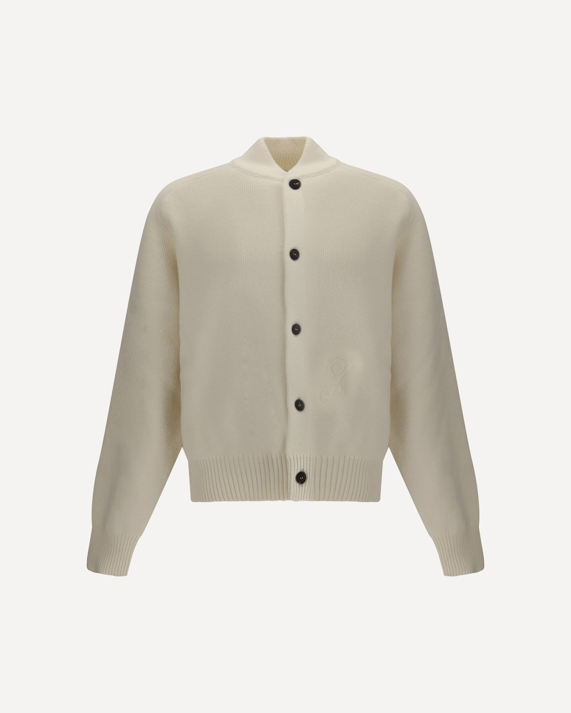 The Virgin Wool Cardigan by Jacquemus combines elegance and comfort, featuring front buttons that emphasize its refined silhouette. The long sleeves and ribbed trims add a touch of classic style, while the embroidered detail on the right side provides a distinctive and sophisticated element to the piece. DETAILS - Sku: CDM00567AK00278_110 - Season: AW25 - Fit: Oversize - Composition: GENERAL 89% Fleece Wool 10% Kashmir/capra Hircus 1% Polyamide - MADE IN ITALY