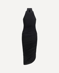 The La Piazza midi Dress by Jacquemus features a high neck and ruched details that give movement to the garment. Sleeveless and sleeveless, it features an asymmetric hemline that adds a modern and sophisticated touch to this elegant and contemporary design. DETAILS - Sku: DRW00722AW00211_990 - Season: AW25 - Fit: Slim - Composition: GENERAL 75% Acetate 20% Polyamide 5% Elastane - MADE IN PORTUGAL