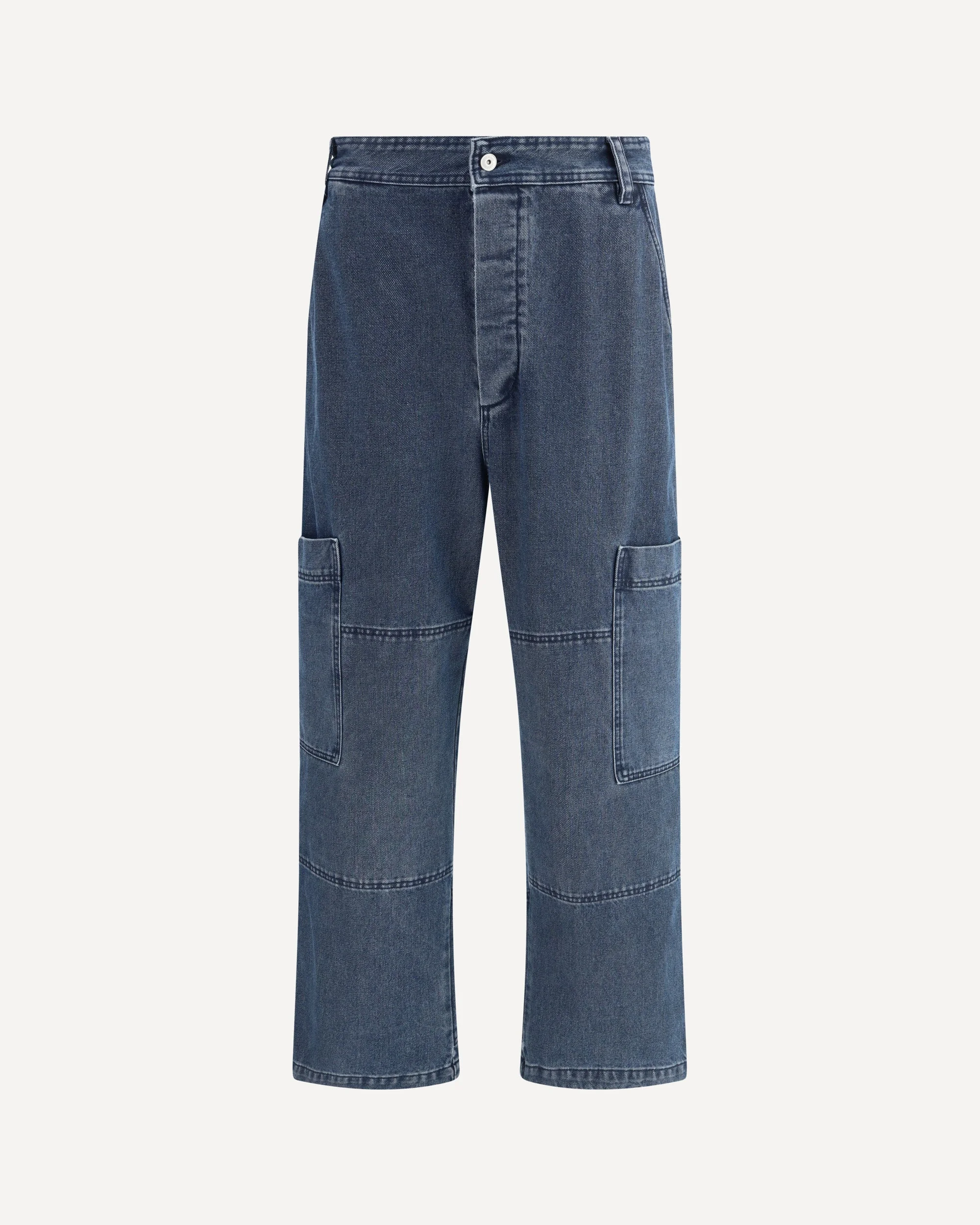 The Le Cargo De-Nimes Carre Jeans by Jacquemus reinterpret denim with a sculptural and contemporary approach. The wide, straight-leg cut pairs with functional details such as cargo pockets on the leg and back patch pockets featuring the brand’s lettering. The front zip-and-button fastening and belt loops complete a design that merges urban attitude with refined craftsmanship. A statement piece that defines modern, effortless style. DETAILS - Sku: PAM00541AD00049_380 - Season: AW25 - Fit: Regular - Composition: GENERAL 100% Cotton - MADE IN PORTUGAL