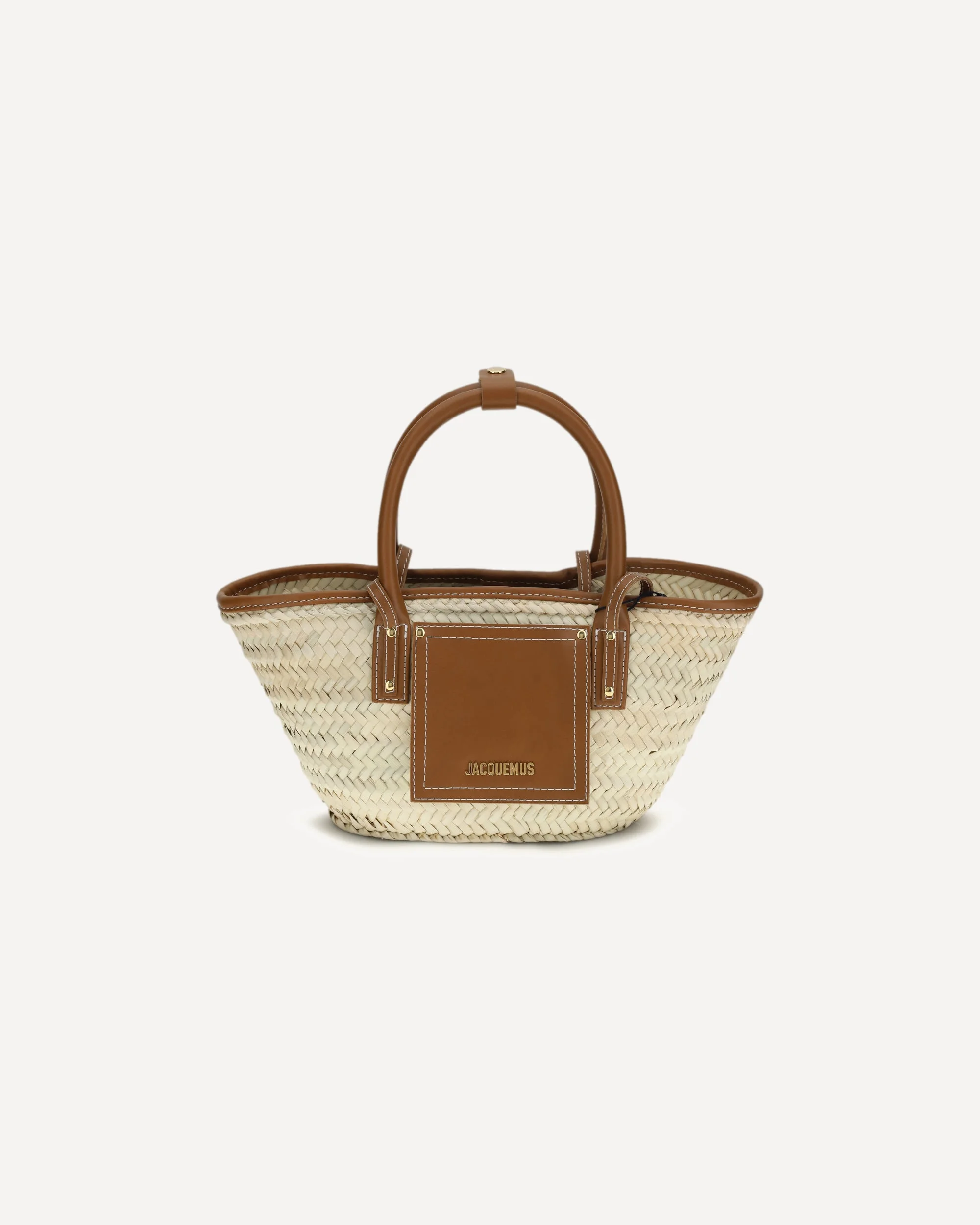 The Le Petit Panier Soli Handbag by Jacquemus is a refined accessory with a soft and lightweight design. The hand-woven straw handle, embellished with suede details, adds a natural, artisanal touch. The long shoulder strap and top handle offer different carrying options, while the contoured edges enhance its elegant shape. The front flap pocket and gold-tone metal studs, along with the metal logo, add a discreet touch of luxury. DETAILS - Sku: BAW00044AC01C04_811 - Season: SS26 - Dimension: 37x19 - Composition: GENERAL 20% Calf Leather Bos Taurus 80% Raffia - MADE IN MOROCCO