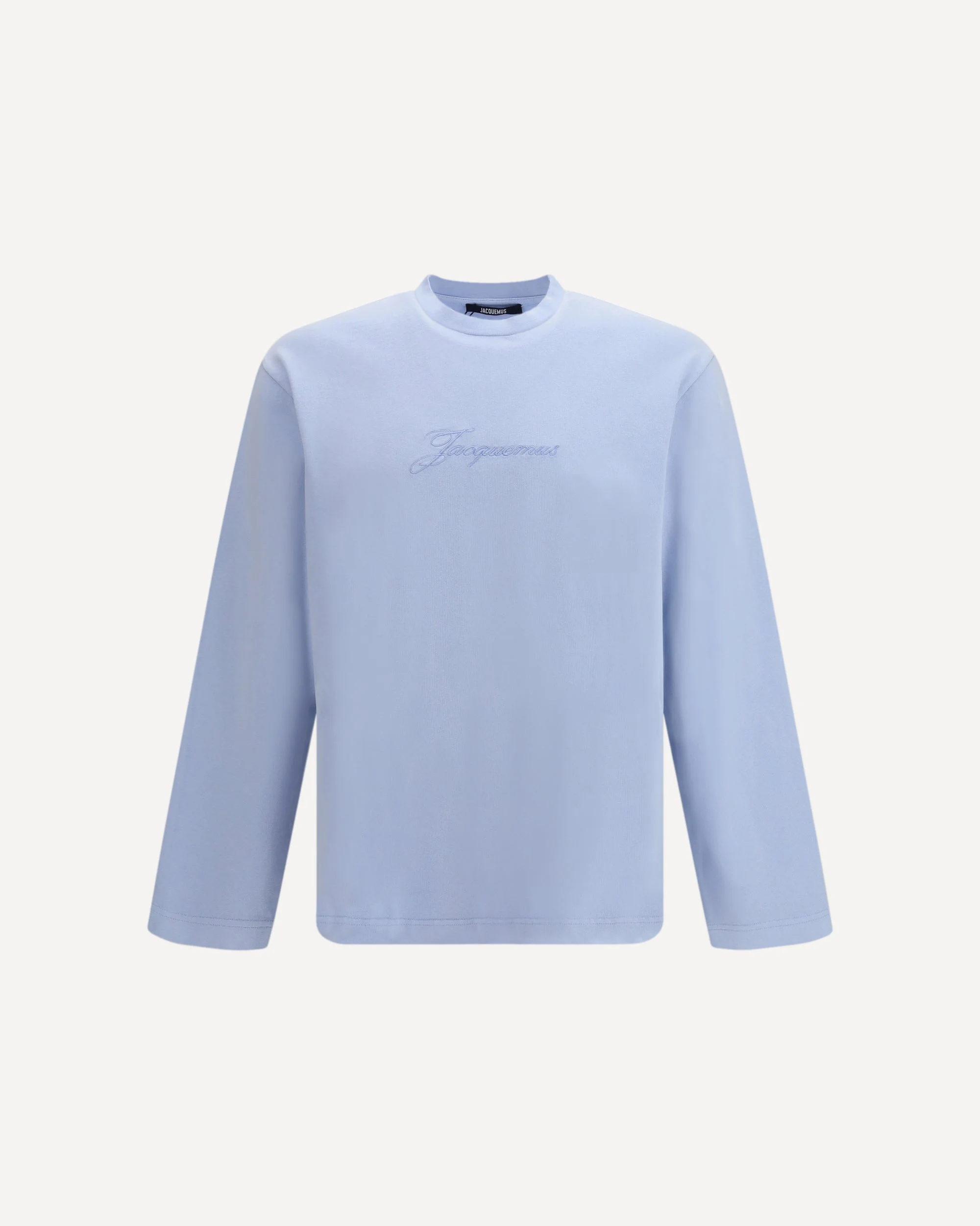 The Le Pigmento T-shirt by Jacquemus is an essential piece with a minimalist and refined design. Made from soft cotton, it features an embroidered logo on the front, adding a distinctive and sophisticated detail. The long sleeves and ribbed crew neck ensure comfort and a perfect fit, while the simple, clean cut makes it versatile for any occasion. An elegant and modern interpretation of casual style, ideal for those seeking a timeless look with a touch of understated luxury. DETAILS - Sku: TSM00632AJ00045_330 - Season: SS26 - Fit: Regular - Composition: GENERAL 100% Cotton - MADE IN PORTUGAL