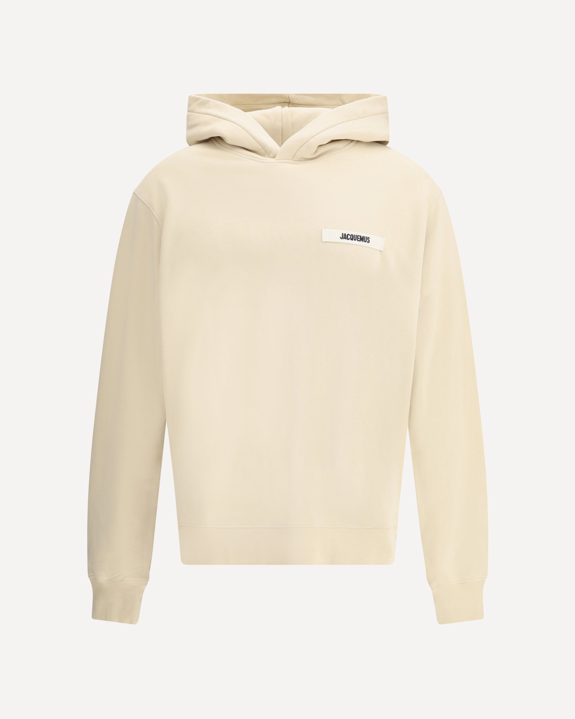 Soft cotton Hoodie by Jacquemus, with a fleece interior for extra comfort. It features a logo patch on the front that adds a distinctive touch to the design. Ribbed cuffs and hem complete the garment, ensuring a snug and comfortable fit. Perfect for a casual and trendy look. DETAILS - Sku: HOM00247AJ00126_150 - Season: AW25 - Fit: Regular - Composition: GENERAL 100% Cotton - MADE IN PORTUGAL