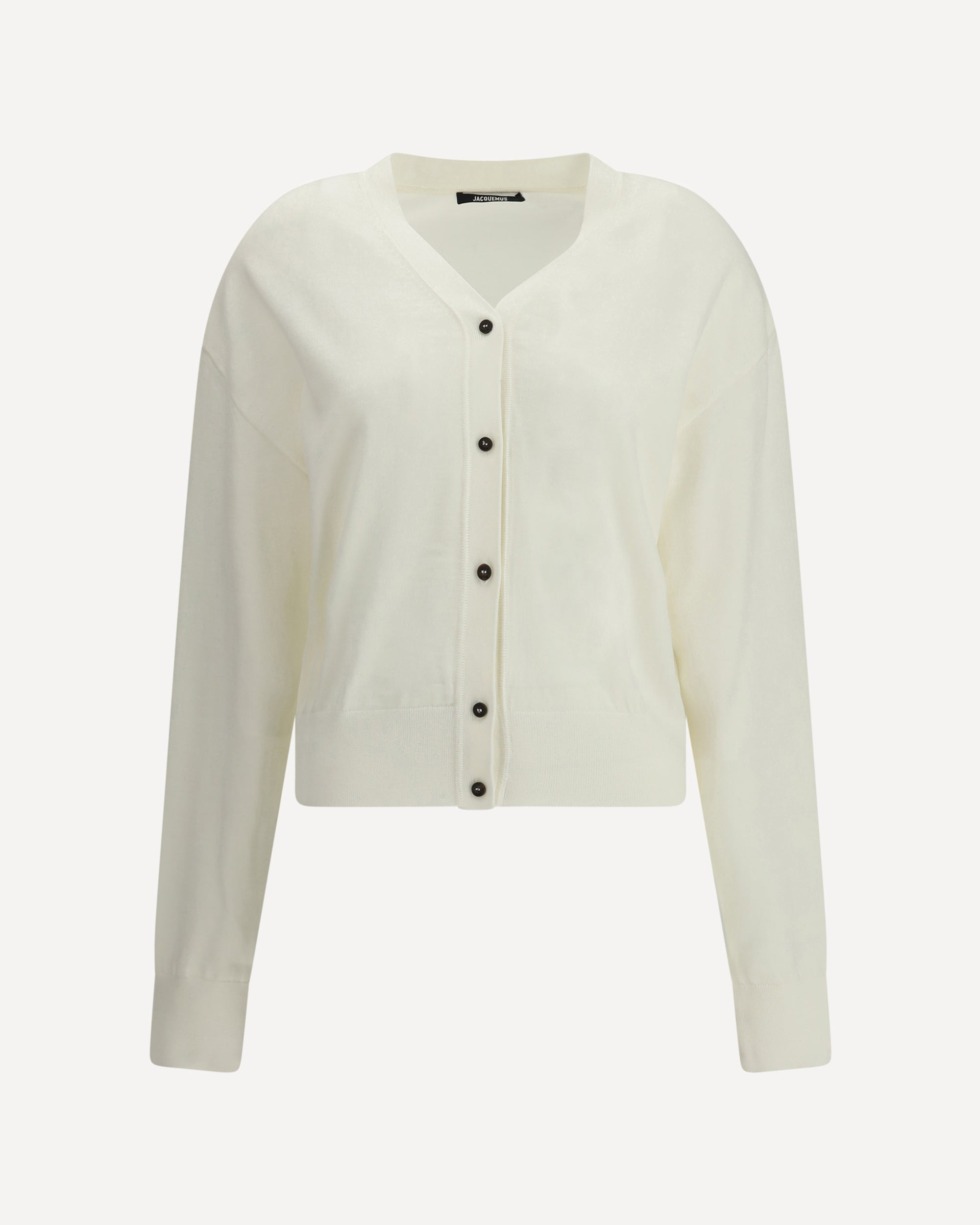 Merino wool Cardigan by Jacquemus combines elegance and comfort with a V-neckline and front button closure. Finished with a ribbed hem and cuffs, it is embellished with an embroidered logo on the back for a distinctive, modern touch. DETAILS - Sku: CDW00816AK00299_110 - Season: AW25 - Fit: Regular - Composition: GENERAL 97% Merino Wool 3% Elastane - MADE IN PORTUGAL