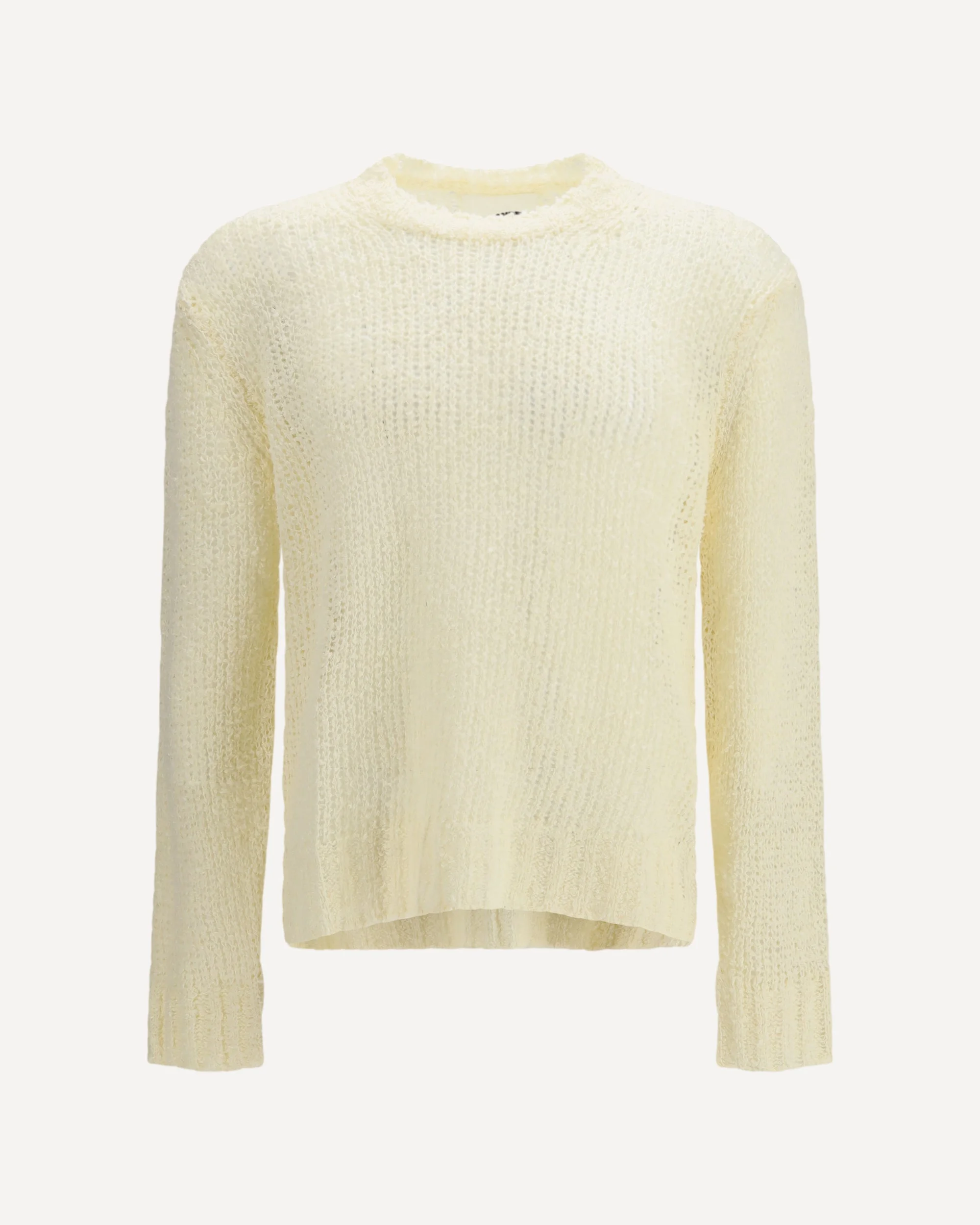 The openwork Sweater by Jil Sander is an elegant and lightweight garment, made with an open stitch that guarantees a fresh and sophisticated fit. With a crew neck, long sleeves, and ribbed details at the collar, cuffs, and hem, it offers a regular and comfortable silhouette. Perfect for a casual-chic look, this sweater combines style and functionality, making it ideal for summer outfits or for layering during mid-seasons. DETAILS - Sku: J22GP0282J15479_106 - Season: SS26 - Fit: Regular - Composition: GENERAL 100% Linen - MADE IN ITALY