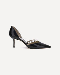Aurelie 65 Black Patent Leather Pointed Pumps with Pearl Embellishment