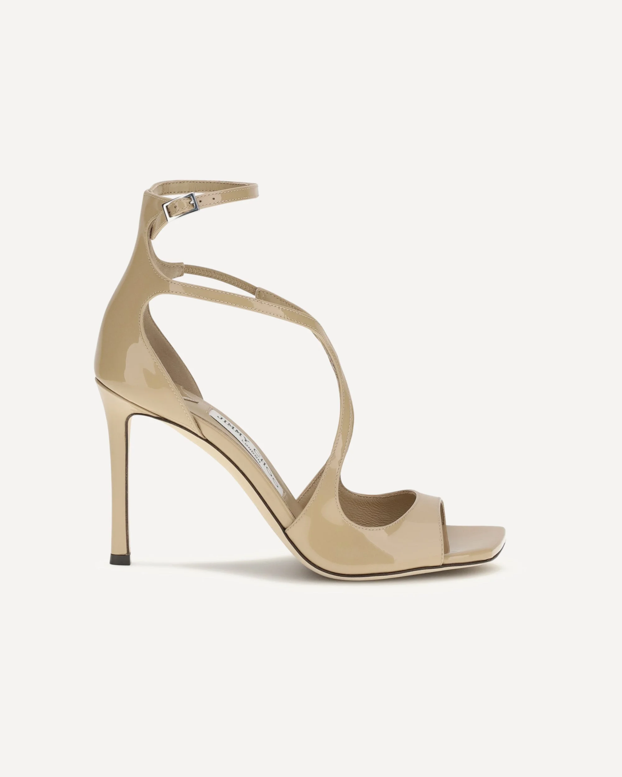 The Azia 95 Sandals by Jimmy Choo combine elegance and comfort in a sophisticated design. Crafted from patent leather, they feature a double strap with internal elastic and an adjustable ankle closure for a secure fit. The square toe and hand-applied leather sole complete the design, offering refined style and artisanal craftsmanship. DETAILS - Sku: J000181175_CHAI - Season: SS26 - Composition: GENERAL 100% Calf Leather Bos Taurus - MADE IN ITALY