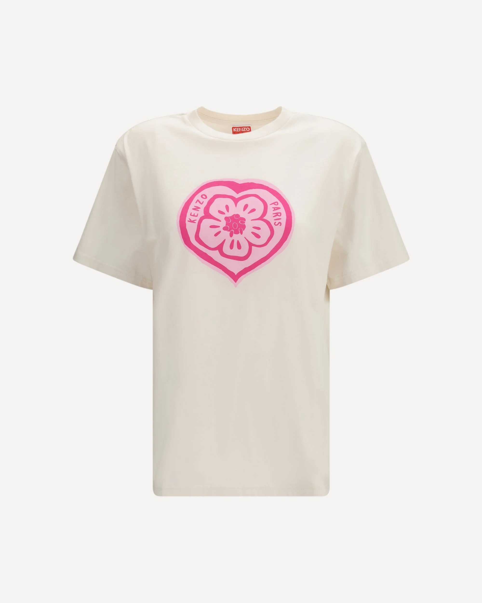 The Boke Heart T-shirt by Kenzo is a casual and distinctive piece made from high-quality cotton. The loose fit ensures comfort and a relaxed look, while the 'KENZO Boke Heart' print on the front adds a graphic and modern touch. The seasonal branding printed in the artwork completes the design, making this T-shirt a unique piece for those looking for a young and contemporary style. Perfect for a casual look with a touch of luxury. DETAILS - Sku: FG52TS3014SG_03 - Season: SS26 - Fit: Regular - Composition: GENERAL 100% Cotton - MADE IN PORTUGAL