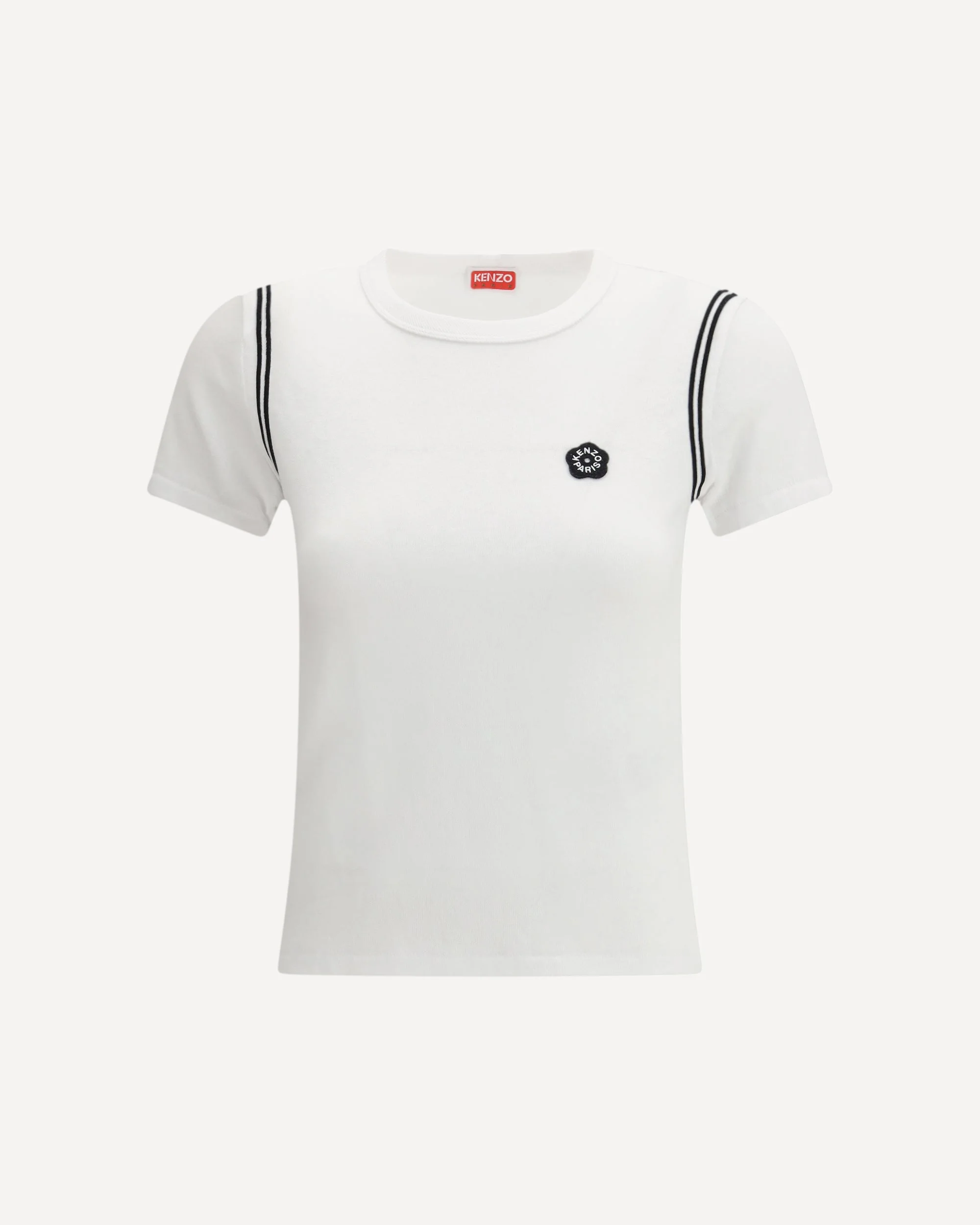 The cotton Boke Flower 2.0 embroidered T-shirt by Kenzo conveys a modern attitude through single jersey construction that offers comfort and a versatile seasonal weight. Contrasted tapes at the shoulders add a graphic touch, while the embroidered Boke Flower 2.0 badge on the chest signs the piece with the brand’s iconic identity. DETAILS - Sku: FG52TS2054SK_01 - Season: SS26 - Fit: Slim - Composition: GENERAL 100% Cotton - MADE IN PORTUGAL