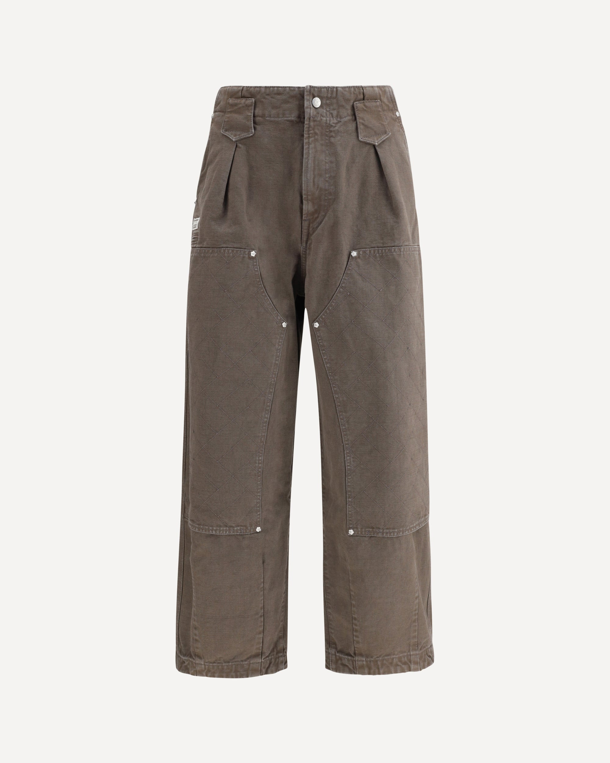 Kenzo's cotton Pants feature a double knee design with irregular 'KENZO Weave' stitching at the knees, giving the garment a graphic and contemporary character. Made of washed-effect cotton, they feature a front button and zipper closure, two side pockets, a welt pocket on the front and one on the back, as well as two back button pockets. A signature Kenzo blend of functionality and distinctive style. DETAILS - Sku: FF65PA2469GU_92 - Season: AW25 - Fit: Regular - Composition: GENERAL 100% Cotton - MADE IN TUNISIA