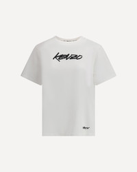 Kenzo's cotton T-Shirt is an essential garment with a strong character. Made from pure cotton, it features a ribbed crew neck that ensures comfort and durability. What makes it unique is the iconic Kenzo signature printed in contrast on the front and back, for a distinctive graphic touch that enhances even the simplest looks. DETAILS - Sku: FF62TS5544SG_02 - Season: AW25 - Fit: Regular - Composition: GENERAL 100% Cotton - MADE IN PORTUGAL