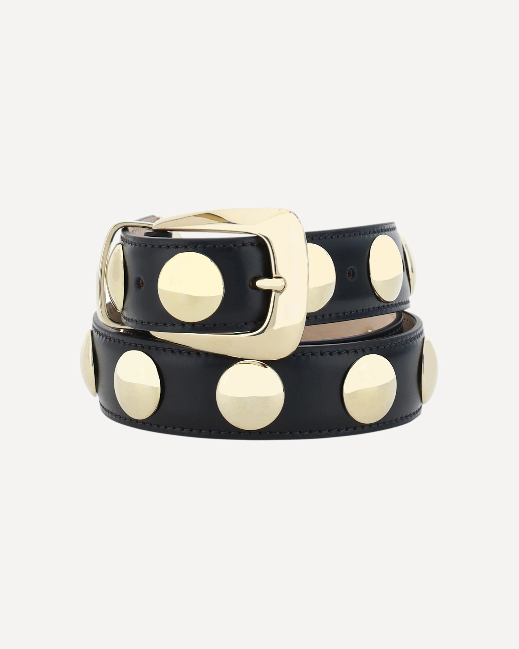 Khaite's Benny leather Belt combines elegance and panache in a refined design. Made of smooth leather, it is decorated with golden spherical studs and completed with a matching metal buckle. Perfect for enhancing dresses, blazers or high-waisted pants with a bold and sophisticated touch. DETAILS - Sku: 10015763_200 - Season: AW25 - Composition: GENERAL 100% Calf Leather Bos Taurus - MADE IN ITALY
