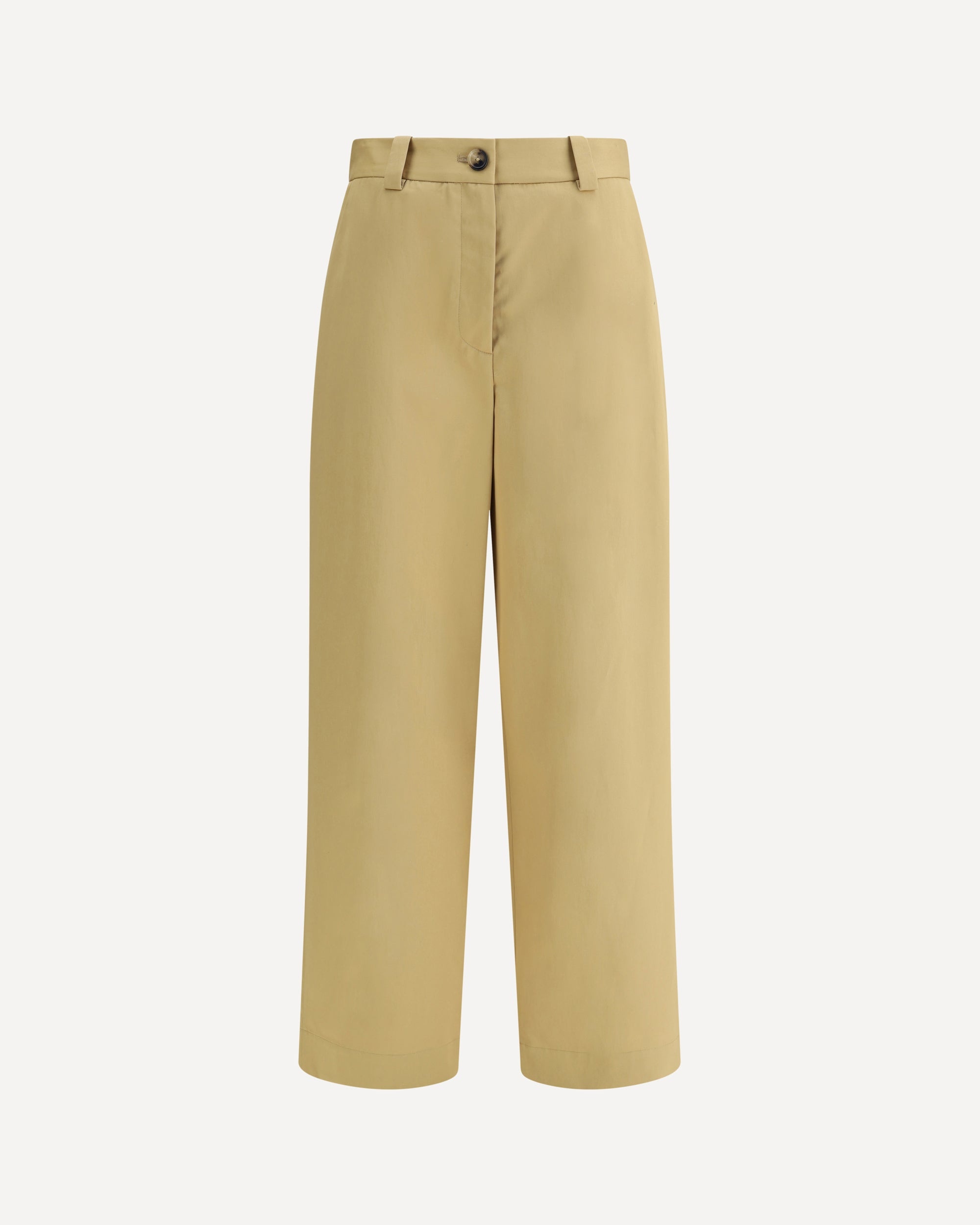 Khaite's Gari Pants reinterpret classic tailoring with a contemporary twist. Featuring a zip-and-button front closure, they have a wide leg that tapers slightly at the bottom, creating a fluid yet structured silhouette. The waistband is defined by belt loops, while the two side welt pockets add functionality and understated elegance. A versatile garment perfect for completing urban and sophisticated looks. DETAILS - Sku: 3165193W193_929 - Season: SS25 - Fit: Regular - Composition: GENERAL 100% Cotton - MADE IN U.S.A.