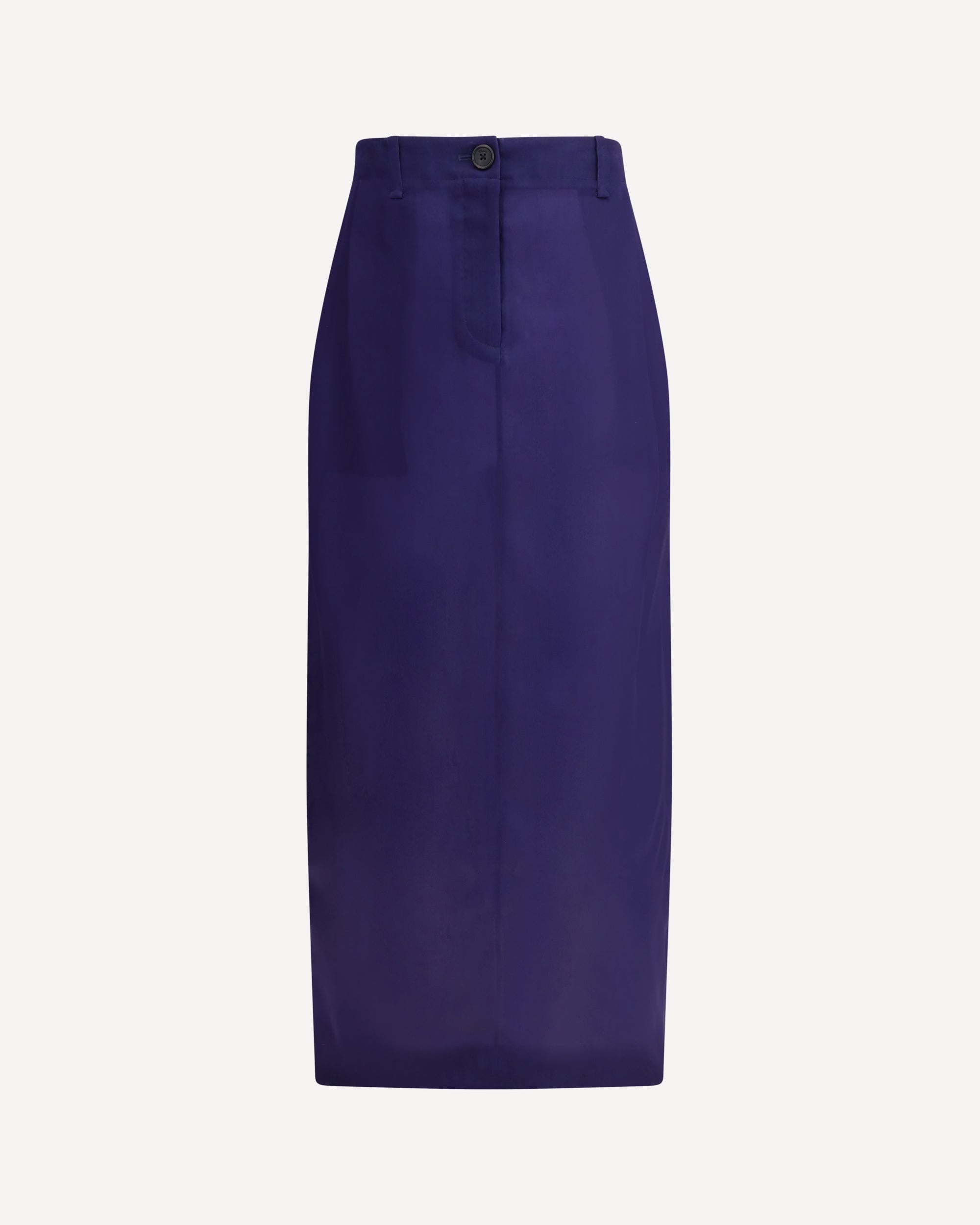 Khaite's Lucian midi Skirt combines elegance and modernity with its silk organza design that creates a refined semi-sheer effect. Featuring a front zipper and button closure, back slit and belt loops at the waist, it is a sophisticated garment that enhances any silhouette with lightness and character. DETAILS - Sku: 41493002W3002_803 - Season: SS25 - Fit: Regular - Composition: GENERAL 100% Silk - MADE IN U.S.A.
