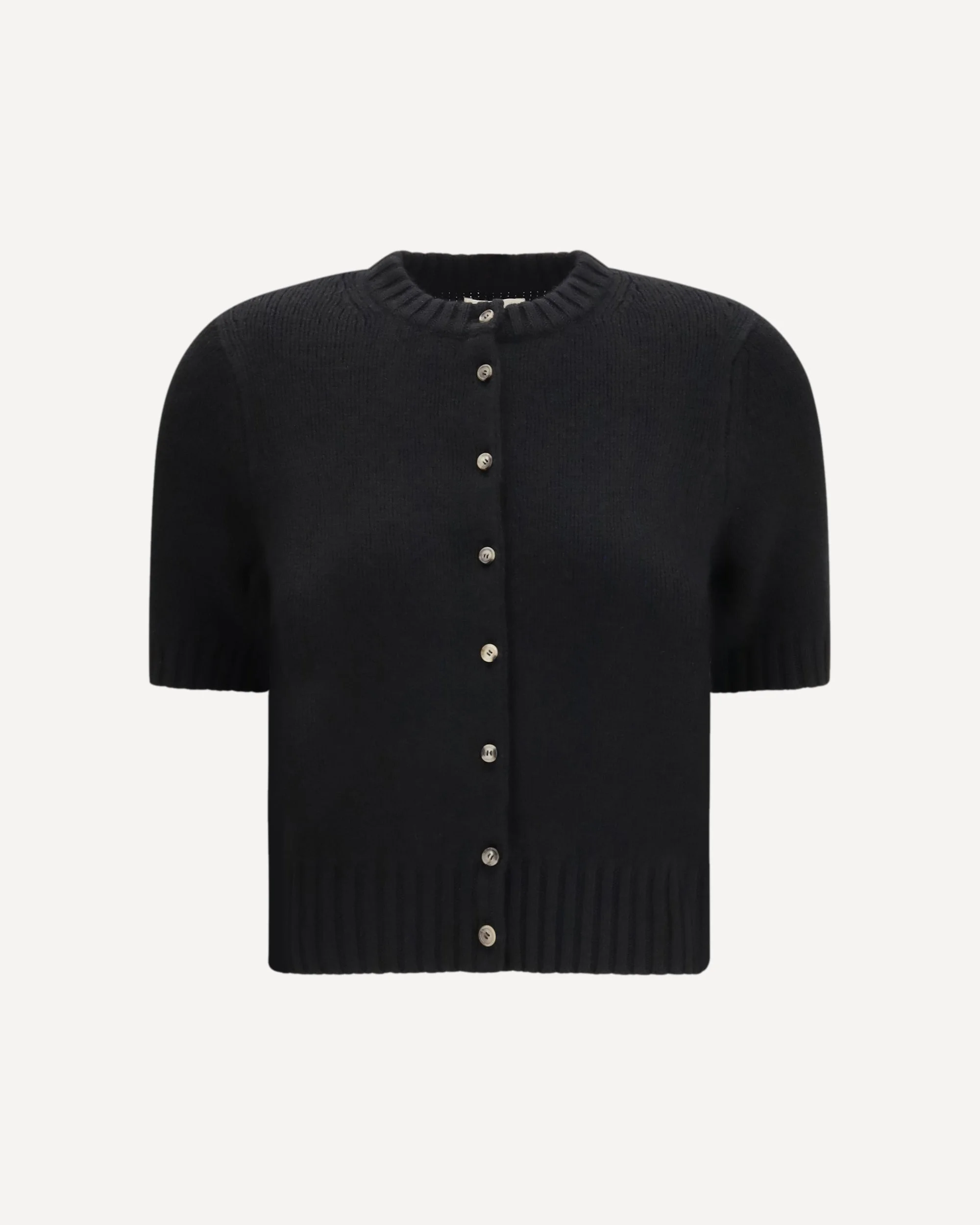 The Nora cropped Cardigan by Khaite is crafted from a soft cashmere blend, combining comfort and understated luxury. Designed with short sleeves and a front button closure, it features ribbed trims along the neckline, sleeves, and hem for a structured, refined finish. DETAILS - Sku: 9608615_200 - Season: SS26 - Fit: Slim - Composition: GENERAL 100% Kashmir/capra Hircus - MADE IN MONGOLIA