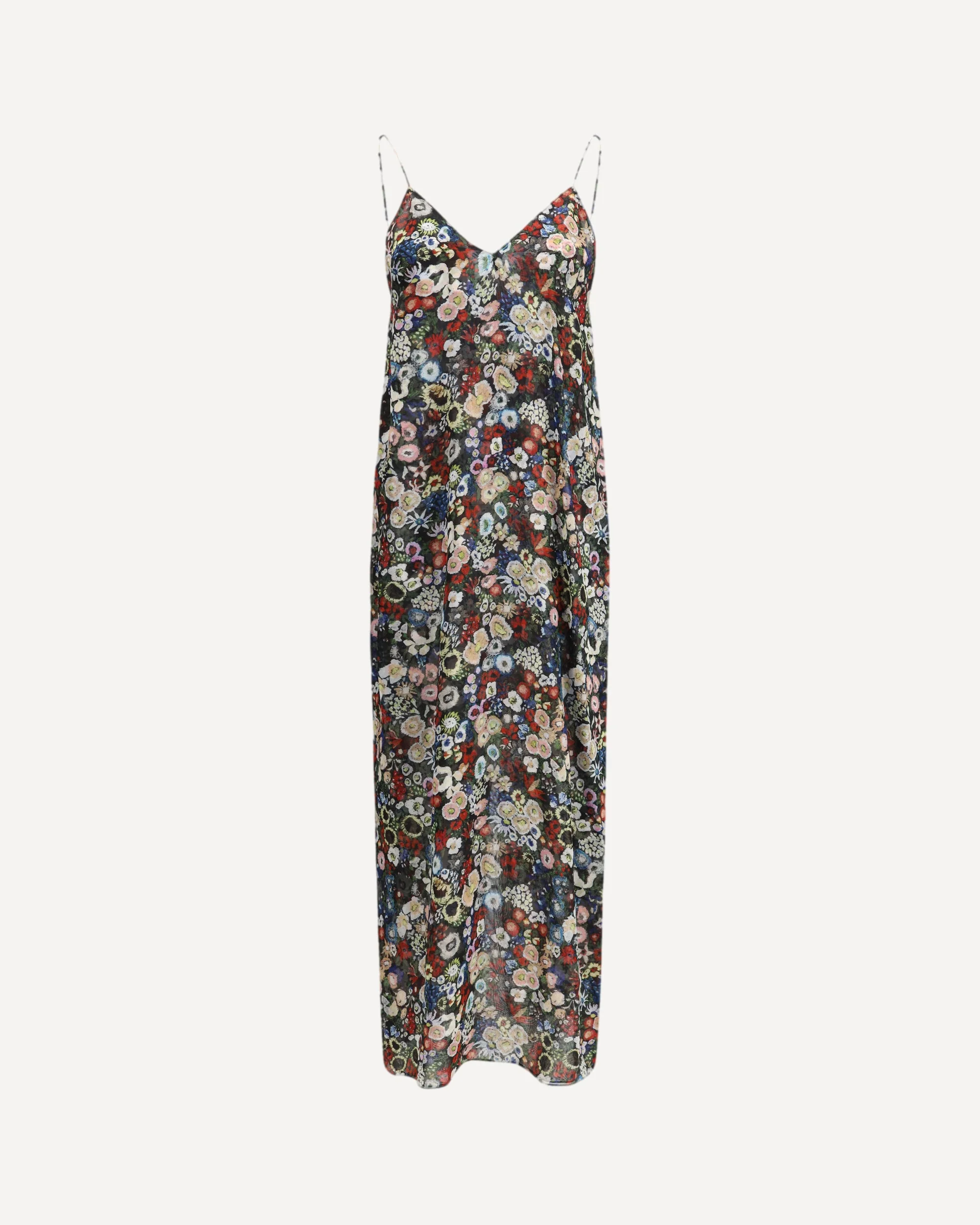 The Taja maxi dress by Khaite is crafted from multicolored silk chiffon with a fluid, ethereal drape. Inspired by lingerie, it features a camisole-style bodice with delicate rouleau straps, bust darts, and a low back for graceful movement. Designed with a double-layered chiffon construction and a slit hem, the dress slips on effortlessly, embodying understated elegance. DETAILS - Sku: 55953372_283 - Season: SS26 - Fit: Regular - Composition: GENERAL 100% Silk - MADE IN ITALY