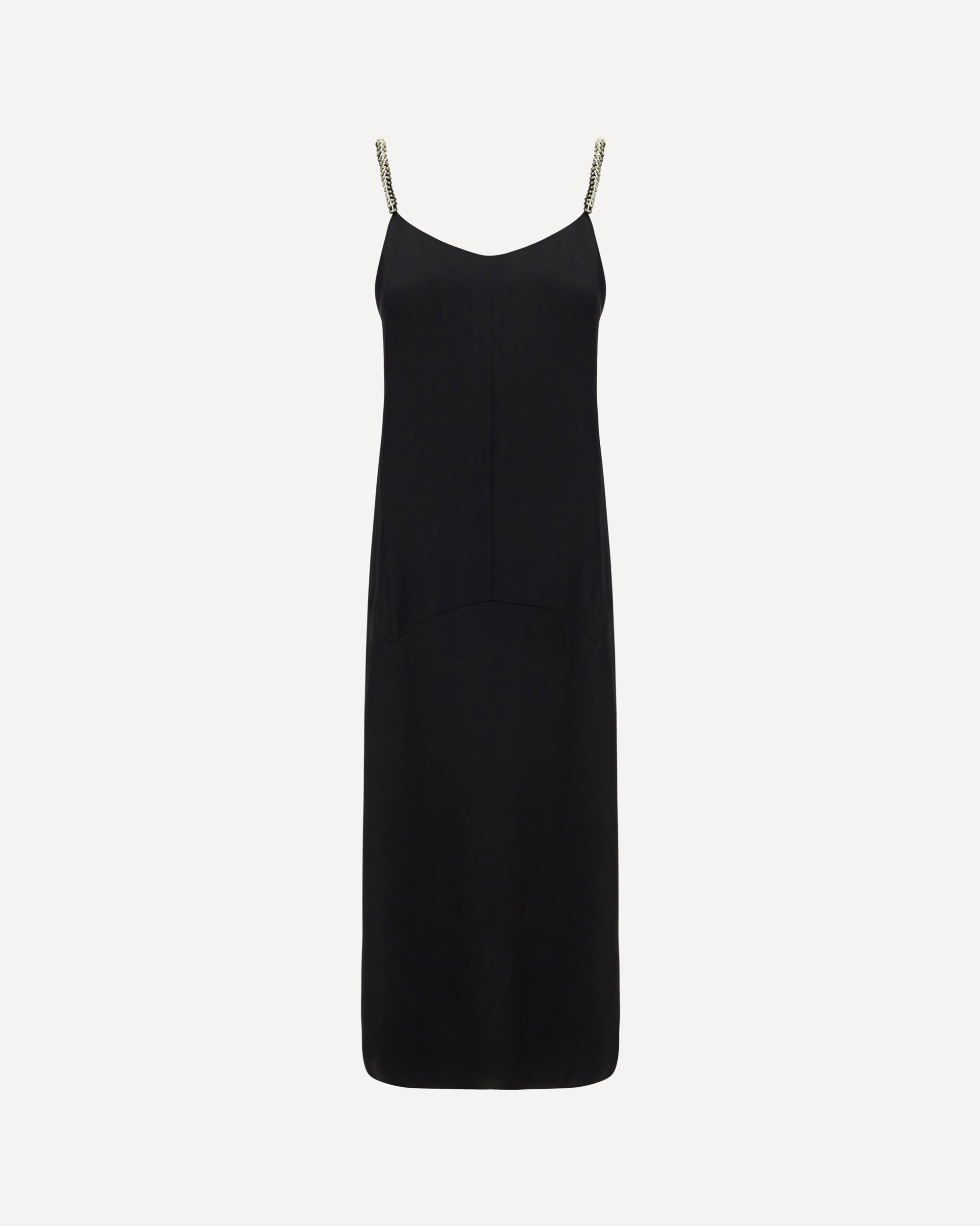 Summer Dress by Lanvin, thin straps woven through gold-plated chains, foot-length design, soft front neckline, chiasurua through hidden zipper on side panel. DETAILS sku RWDR90025882P24_10 composition : POLYESTER 100% color group : BLACK gender : WOMAN season : SS24 size chart : WOMAN FR category name : DRESSES