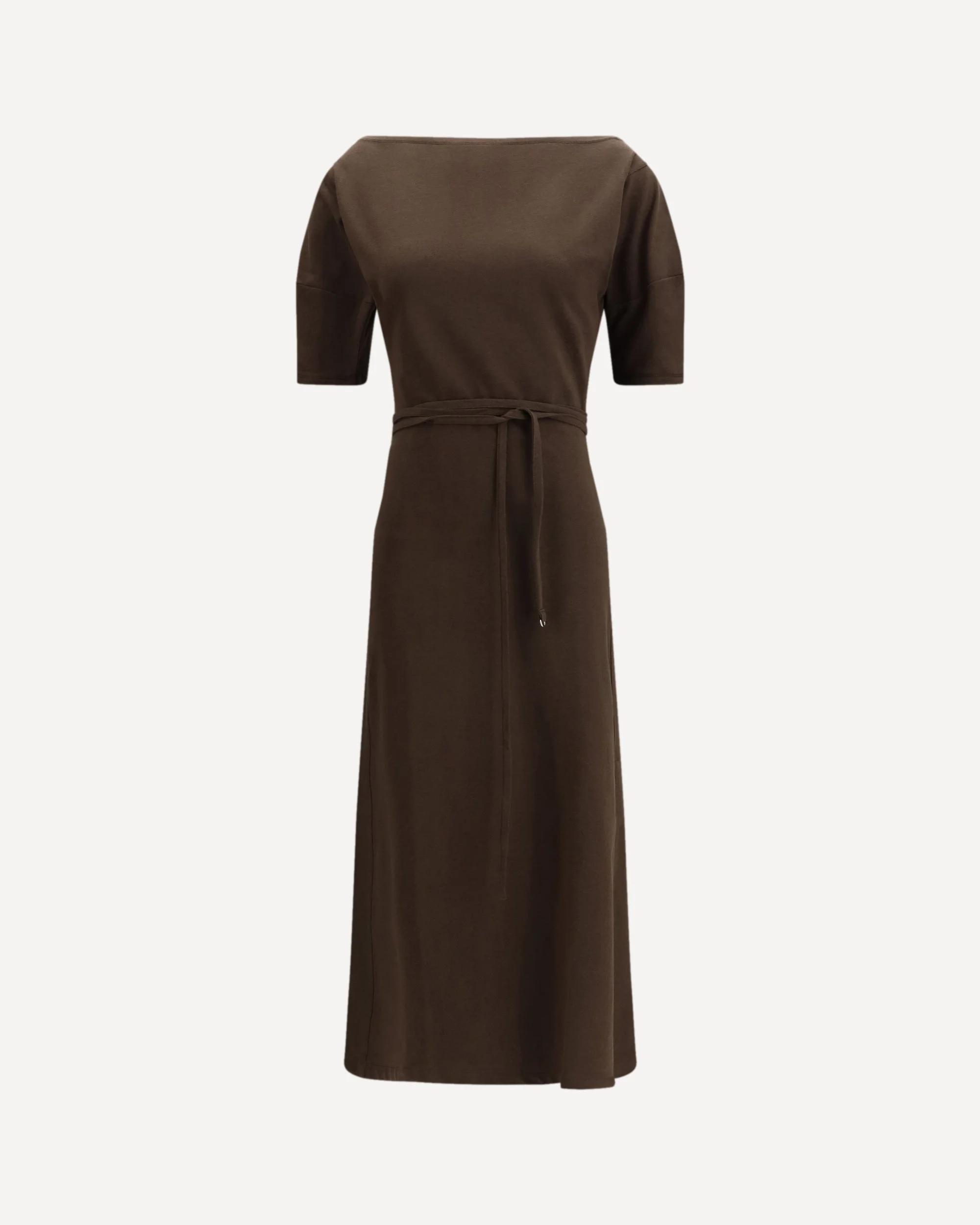 The boat neck Dress by Lemaire is an elegant and minimalist piece, crafted from a refined blend of cotton and linen to ensure freshness and comfort. The midi design with short sleeves offers a feminine and sophisticated silhouette, while the adjustable cotton belt at the waist allows you to customize the fit, emphasizing the figure. The boat neckline adds a touch of sophistication without being too exuberant, making this dress perfect for formal or casual-chic occasions. A timeless classic for those seeking simplicity and timeless style. DETAILS - Sku: DR1147LJ1010A_BR512 - Season: SS26 - Fit: Regular - Composition: GENERAL 70% Cotton 30% Linen - MADE IN PORTUGAL