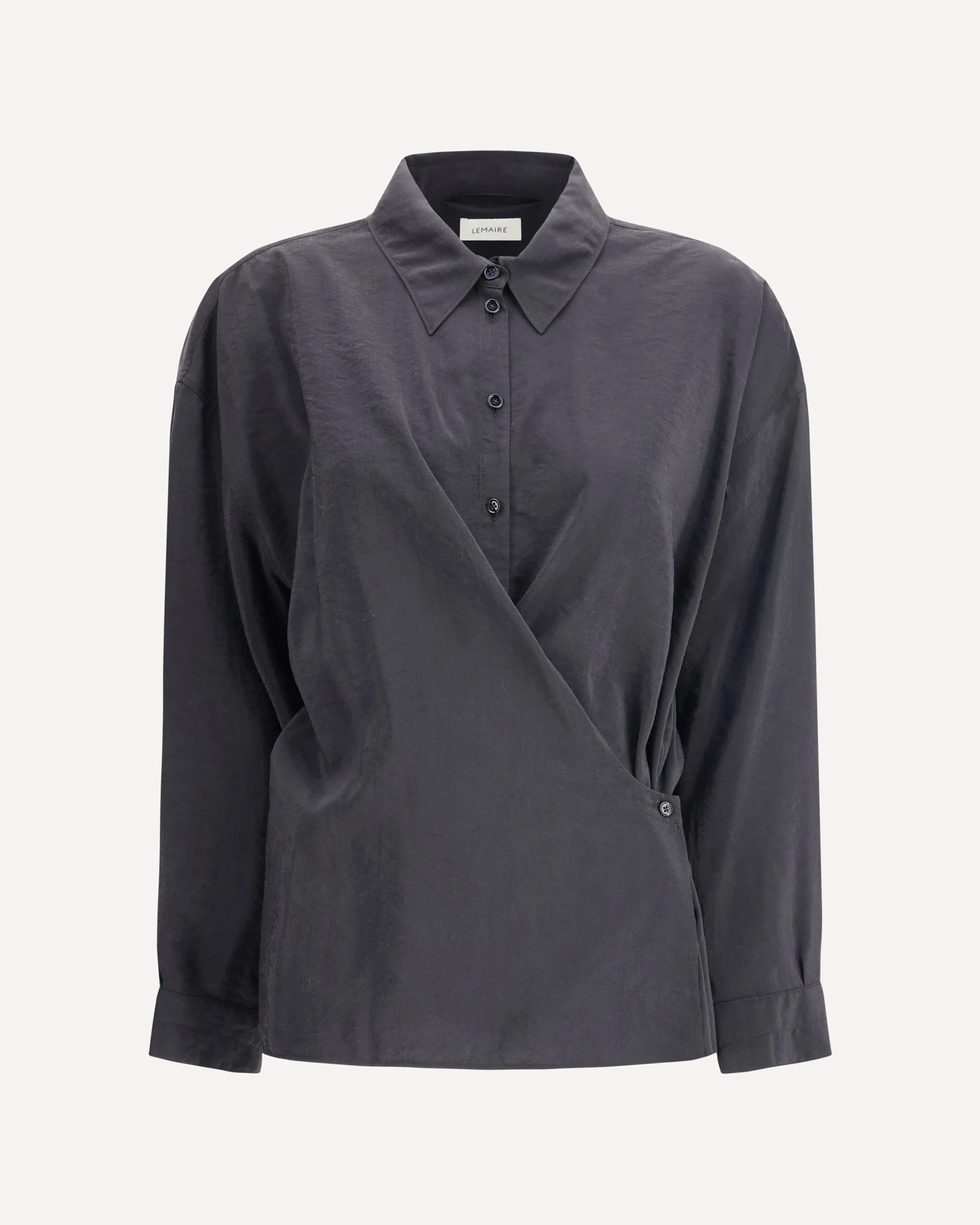 The draped Shirt by Lemaire combines minimal elegance with tailored details. Featuring a classic collar, it features a front closure embellished with a delicate drape, giving movement and sophistication to the garment. DETAILS - Sku: SH1141LF1308_BK999 - Season: AW25 - Fit: Regular - Composition: GENERAL 76% Silk 24% Polyamide - MADE IN ROMANIA