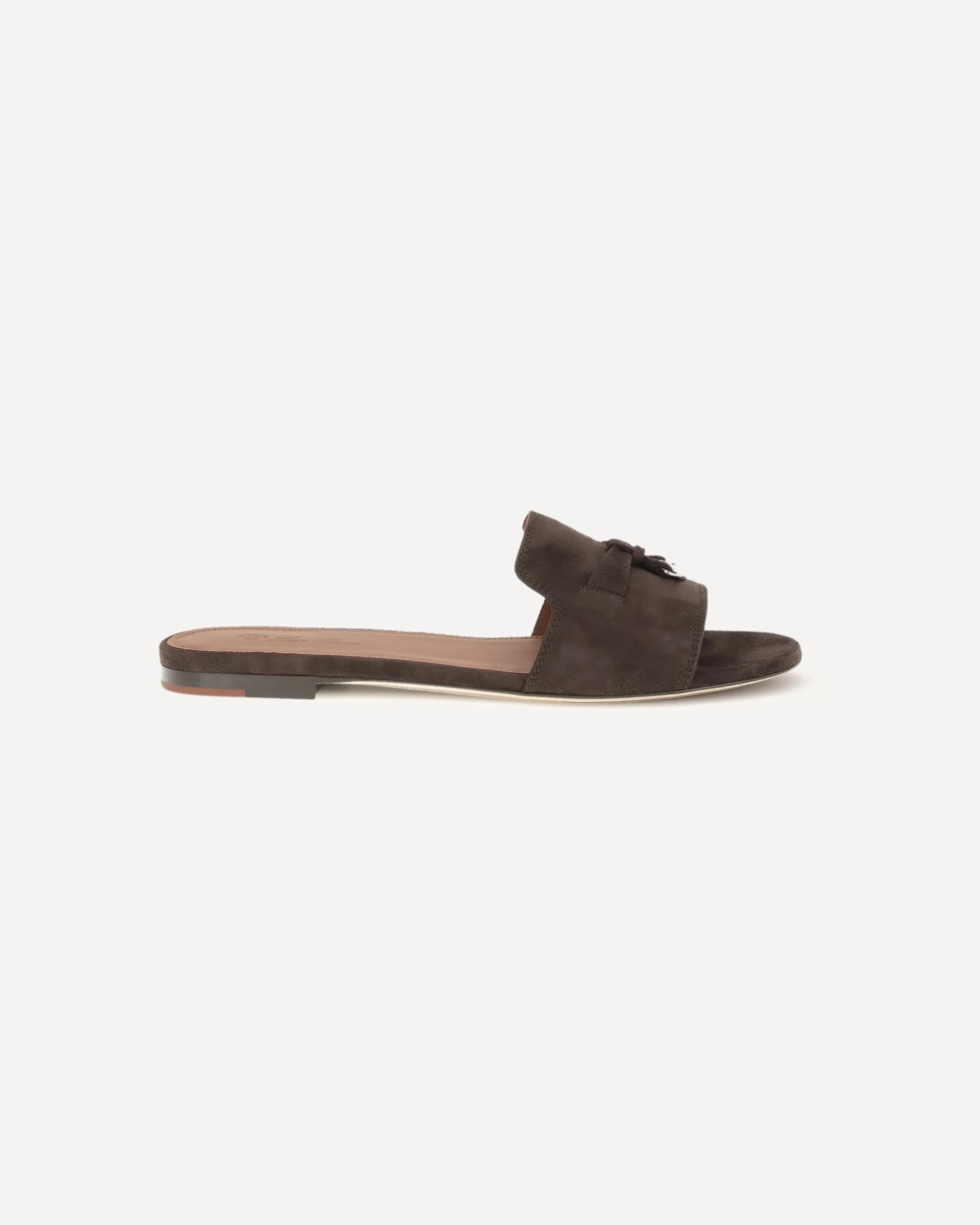 The leather Charms Sandals by Loro Piana are an elegant and refined accessory, ideal for a sophisticated summer look. The flat sole ensures comfort, while the slightly elongated toe adds a touch of understated elegance. The suede front band is embellished with an applique detail featuring the brand's engraved monogram, giving it a distinctive and recognizable touch. The branded insole completes the design with an additional luxury detail. DETAILS - Sku: FAI5580_H1B3 - Season: SS26 - Composition: UPPER 100% Lamb Ovis Aries Aries SOLE 100% Goatskin/hircus Goatskin - MADE IN ITALY