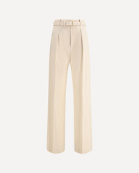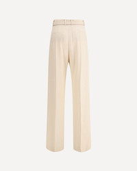 The Edward Pants by Loro Piana expresses sophisticated elegance through tailored details and fine materials. Featuring a high waist and a straight fit with front pleats, it has straight side pockets and welt pockets on the back. The closure is completed with a zipper, hook and button, with horn buttons adding a refined touch. The belt loops at the waist are accompanied by a belt covered in matching fabric for a polished, flawless look. DETAILS - Sku: FAQ1296_A193 - Season: AW25 - Fit: Regular - Composition: GENERAL 52% Linen 48% Fleece Wool - MADE IN ITALY