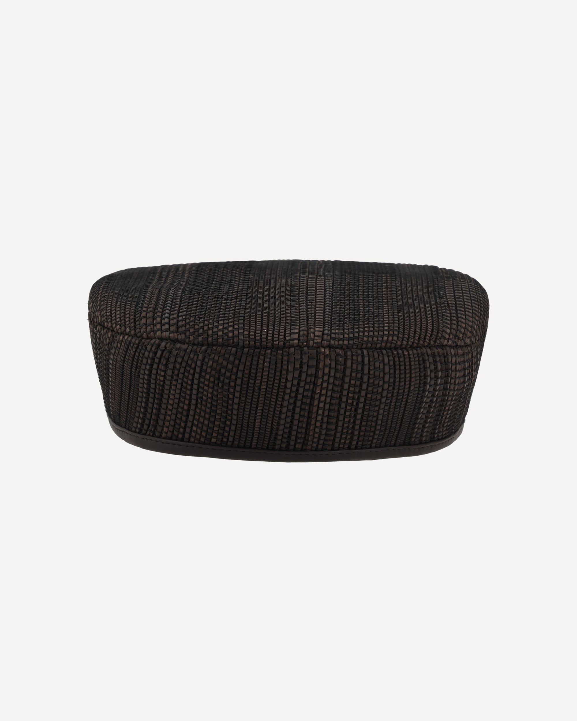 The Emily Hat by Loro Piana is a masterpiece of elegance and craftsmanship, featuring a sophisticated and innovative design. The structured beret model, with its slanted and flat crown, offers a unique and contemporary look. Crafted from strips of buffalo leather of different widths, each strip is tied with cotton threads, creating a three-dimensional texture that recalls the elegance of traditional Japanese Tatami towels. The intricate and refined stripe pattern gives the hat a visual depth that makes it a true statement piece. This hat represents the perfect balance between tradition and innovation, an ideal accessory for those seeking a distinctive and refined style. DETAILS - Sku: FAP1539_H0XV - Season: SS25 - Composition: GENERAL 100% Buffalo - MADE IN ITALY