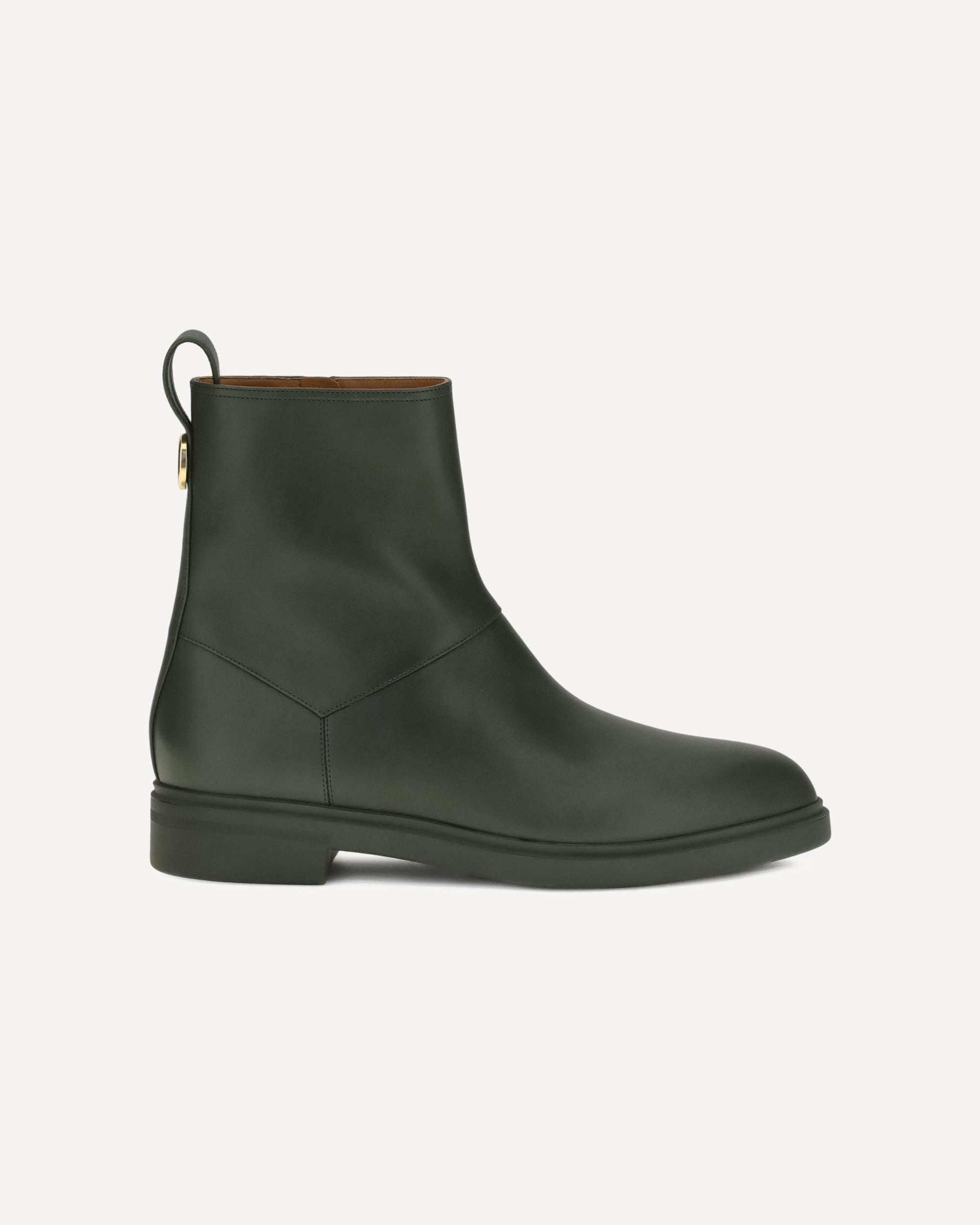 Kilda Ankle Boots by Loro Piana represent excellent craftsmanship combined with sophisticated and functional design. Made of 100% calfskin leather, they guarantee softness and durability, while the rubber sole ensures grip and comfort in every step. Equipped with a practical leather pull-on tab, they are enhanced by an elegant back detail with a gold finish and engraved logo, underscoring the brand's refined identity. A leather pull-on matching the upper and a zipper closure on the inside complete the style, offering an easy and secure fit. A must-have for those seeking style, quality and comfort for every occasion. DETAILS - Sku: FAP8441_5082 - Season: AW25 - Composition: GENERAL 100% Calf Leather Bos Taurus - MADE IN ITALY