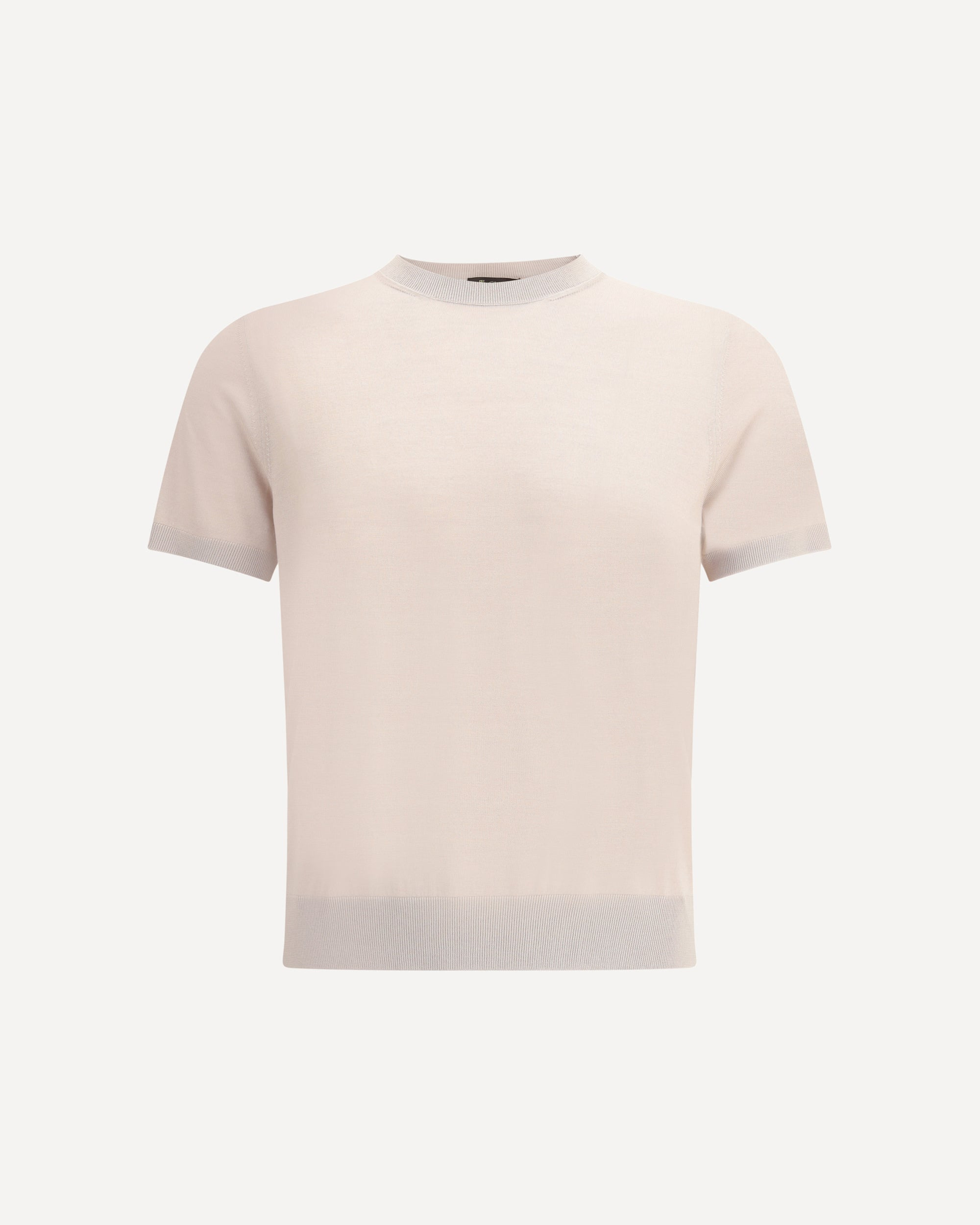Virgin wool, silk and cashmere T-Shirt by Loro Piana features a soft ribbed crew neck and ribbed-finished hem for fine detail. Made from an exclusive blend of fine materials, this T-shirt offers an elegant and sophisticated monochrome pattern. Perfect for those seeking a versatile garment that combines comfort, luxury and contemporary style, suitable for both casual and more sophisticated outfits. DETAILS - Sku: FAO9854_A0MY - Season: AW25 - Fit: Regular - Composition: GENERAL 40% Fleece Wool 30% Silk 30% Kashmir/capra Hircus - MADE IN ITALY