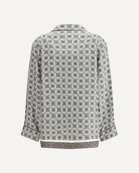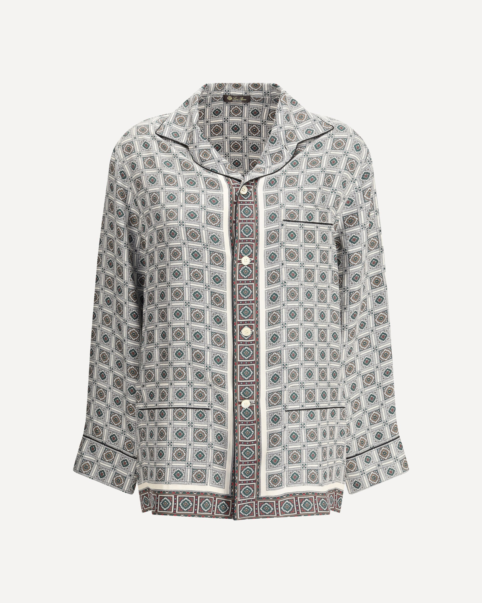 Loro Piana's Liam Shirt is a garment with a fresh and sophisticated spirit. Featuring an open collar and a floral print that lends a delicate touch, it has two patch pockets on the chest, including a smaller one for functional details. Rolled-edge cuffs and a mother-of-pearl button closure enhance the pattern's craftsmanship, while contrasting trim on the profile adds character. The slightly oversized fit completes the design, lending comfort and modern style. DETAILS - Sku: FAP8299_T1S7 - Season: AW25 - Fit: Regular - Composition: GENERAL 100% Silk - MADE IN ITALY