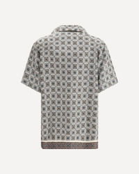 The Silk Shirt by Loro Piana is an elegant and refined garment enhanced by a refined tile floral print. Made of fine silk, it features a wide collar, short sleeves and a slip pocket that combines functionality and style. The mother-of-pearl button closure adds a touch of understated luxury, while contrasting piping elegantly defines the design. Perfect for a sophisticated summer look. DETAILS - Sku: FAP8302_T1S7 - Season: AW25 - Fit: null - Composition: GENERAL 100% Silk - MADE IN ITALY