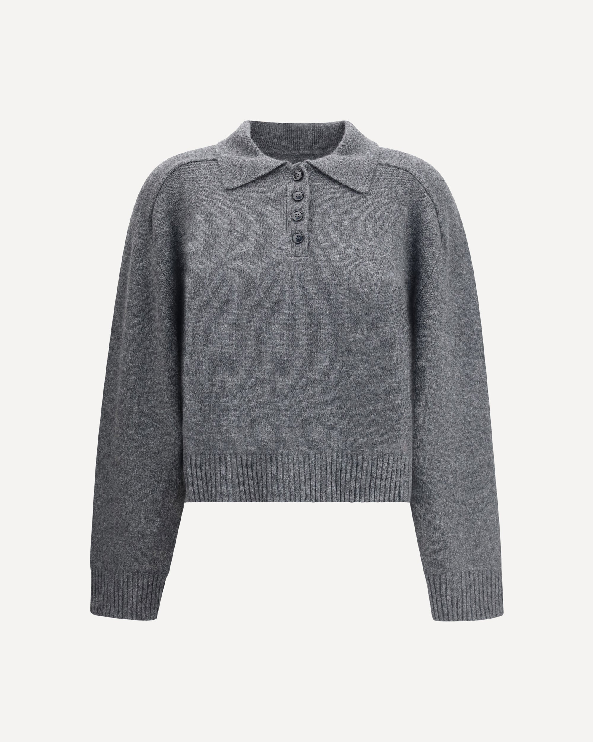 LouLou de Saison's cashmere Sweater is an elegant polo style, finished with a classic ribbed collar and three-button front closure. Ribbed cuffs and hem complete the design, offering the perfect balance of sophistication and comfort. DETAILS - Sku: HOMERELDS_ANTHRACITE - Season: AW25 - Fit: Regular - Composition: GENERAL 100% Kashmir/capra Hircus - MADE IN CHINA