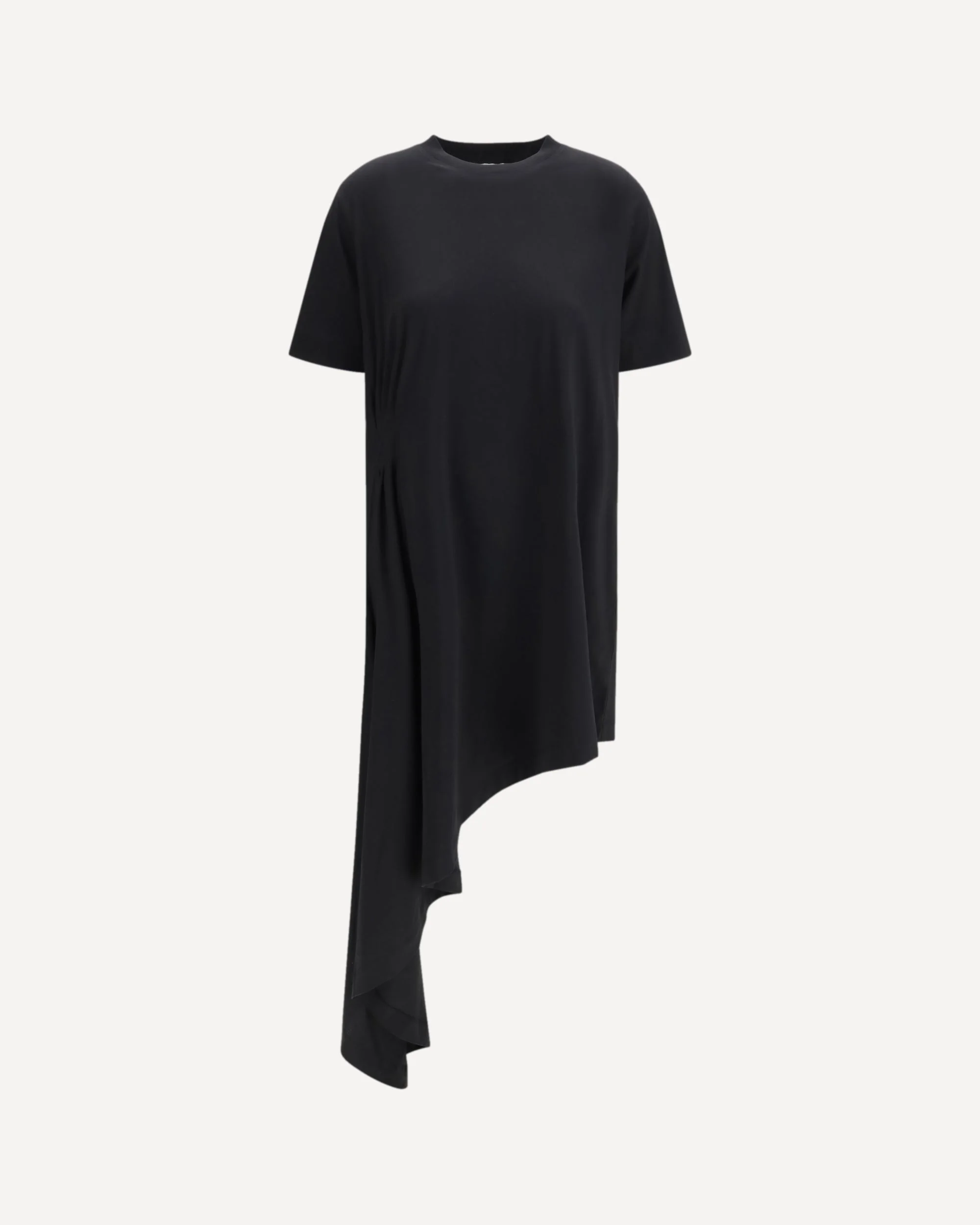 The Igari T-shirt dress by Loulou de Saison, defined by an asymmetrical cut that brings fluidity and a modern edge to the silhouette. A pleated detail adds texture and movement, while the crew neckline and short sleeves echo the simplicity of a classic T-shirt, reimagined with a contemporary twist. DETAILS - Sku: IGARI_BLACK - Season: SS26 - Fit: Regular - Composition: GENERAL 100% Cotton - MADE IN PORTUGAL