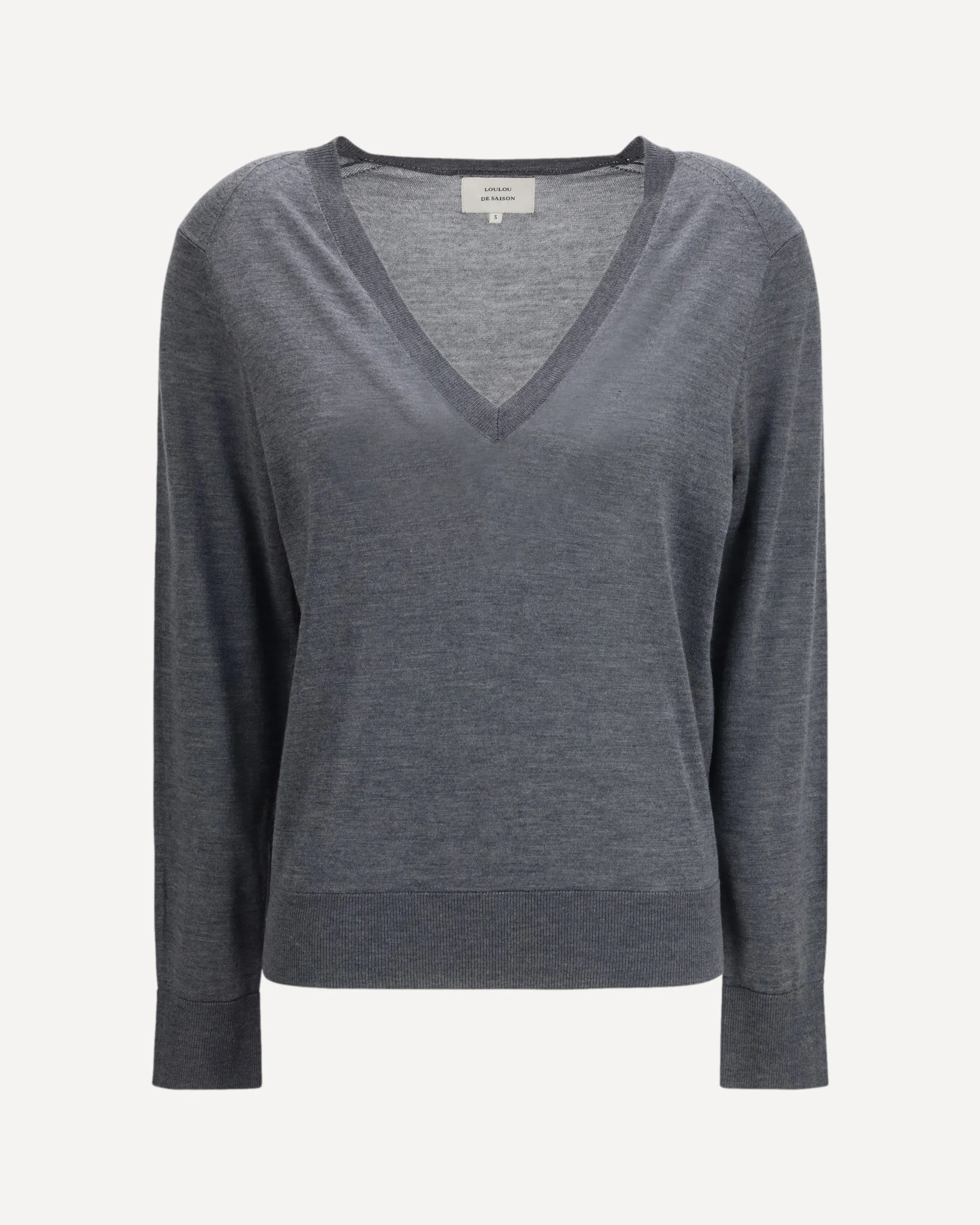 The Julio cashmere Sweater by LouLou de Saison is a luxurious and sophisticated garment, made from finely knitted, fluid cashmere to ensure superior comfort. The loose fit gives it a relaxed look, while the V-neck and ribbed details add elegance and structure to the design. Inspired by menswear, this sweater offers a modern and versatile silhouette, perfect for those looking for a mix of classic and contemporary style. A must-have for a chic and timeless wardrobe. DETAILS - Sku: JULIO_ANTHRACITE - Season: SS26 - Fit: Regular - Composition: GENERAL 100% Kashmir/capra Hircus - MADE IN CHINA