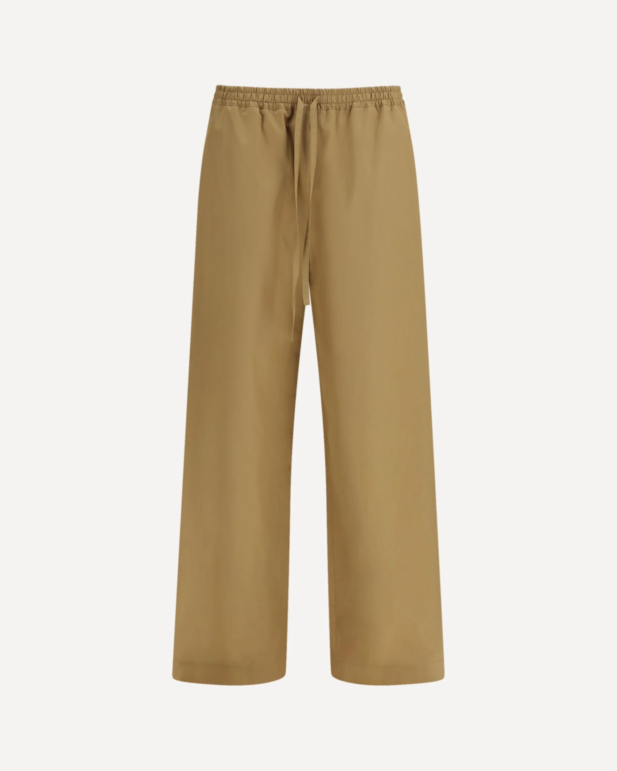 The Sero Lds cotton poplin Pants by LouLou de Saison are an essential piece for summer, made from cool cotton poplin that guarantees comfort and breathability. The style features a straight fit with a mid-rise elastic waistband, offering a comfortable and versatile silhouette. Minimal details include two side pockets, which add practicality without compromising the elegance of the design. Perfect for a casual yet refined look, these pants are ideal for warm days. DETAILS - Sku: SEROLDS_DUNE - Season: SS26 - Fit: Regular - Composition: GENERAL 100% Cotton - MADE IN ROMANIA