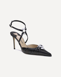 The Double Heart Pumps by Mach&Mach are a tribute to femininity and glamorous elegance. Featuring a slender silhouette with an elongated toe, they feature a double rhinestone heart on the front and an additional heart detail on the ankle strap. The stiletto heel flatters the figure, while the strap closure ensures a secure and refined fit. DETAILS - Sku: PF25S099195X08BLK_BLACK - Season: AW25 - Composition: GENERAL 100% Calf Leather Bos Taurus - MADE IN ITALY
