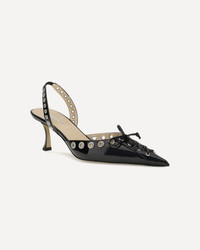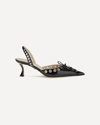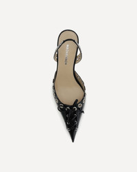 Mach&Mach's studded Pumps are a slingback model with a strong, feminine character. Featuring an almond toe and kitten heel, they have laces on the front and round studs that give a rock-chic and refined touch. DETAILS - Sku: PF25S097965PATBLK_BLACK - Season: AW25 - Composition: GENERAL 100% Calf Leather Bos Taurus - MADE IN ITALY