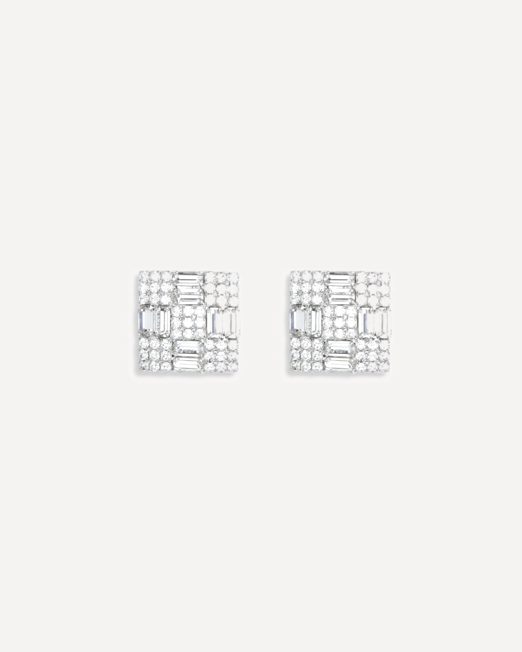 The Crystal Checkerboard lobe Earrings by Magda Butrym feature an elegant checkerboard pattern made with luminous crystals, adding sparkle and a modern touch. Compact yet impactful, they are perfect for adding a sophisticated note to any look. DETAILS - Sku: 703925_RHODIUMSIL - Season: AW25 - Composition: GENERAL 100% Brass - MADE IN POLAND