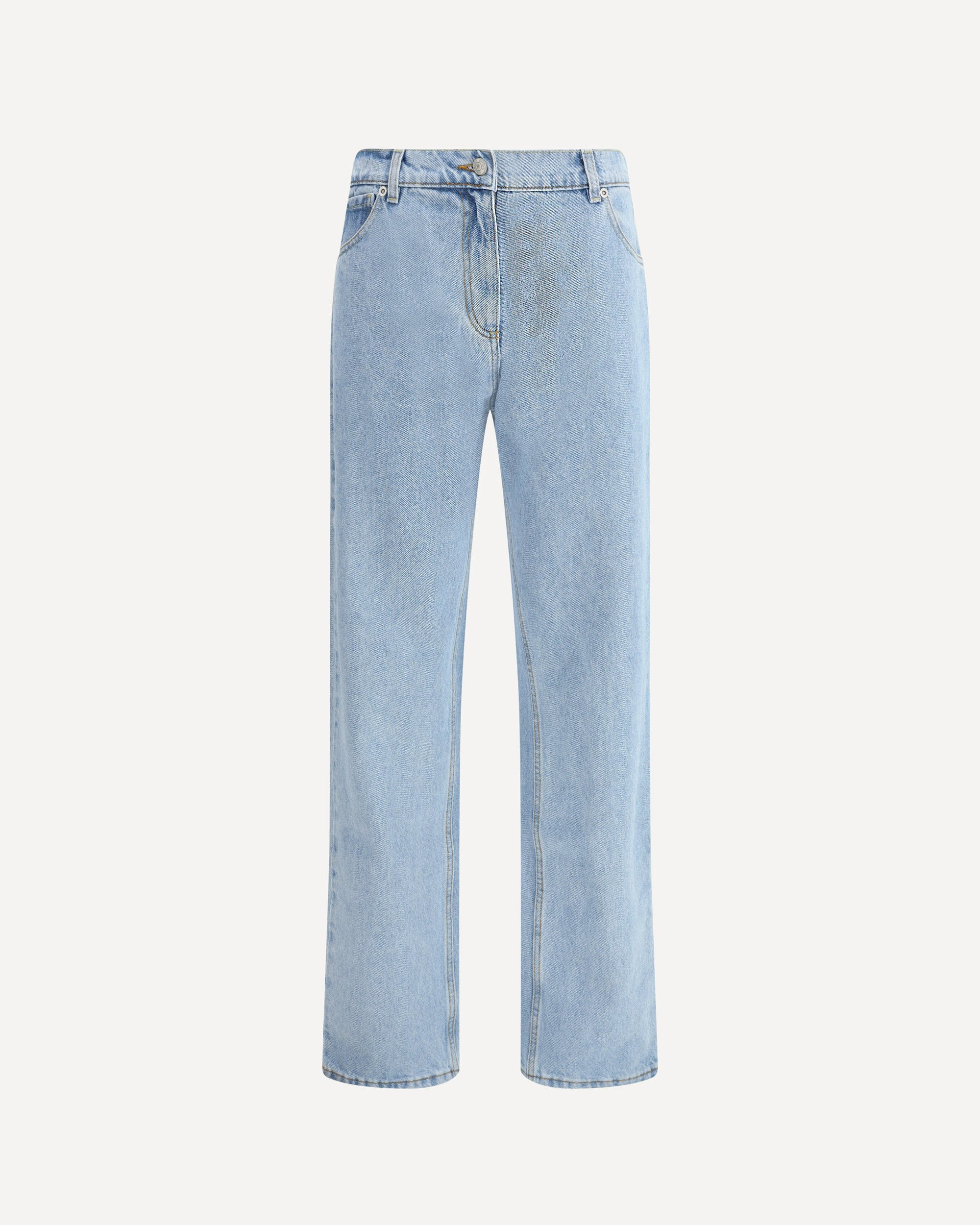 Made of pure washed cotton, Magda Butrym's straight jeans offer a casual yet curated aesthetic. Featuring a classic five-pocket design, they feature belt loops at the waist, a zipper fly and single button closure. The logo label on the back adds a distinctive detail, perfect for completing an everyday look with a touch of signature style. DETAILS - Sku: 181725_LIGHTBLUE - Season: AW25 - Fit: Regular - Composition: GENERAL 100% Cotton - MADE IN POLAND